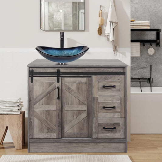 Barn Door Bathroom Vanity 24/30/36/48" , Farmhouse Style Standing Pedestal Cabinet with Sink BA015