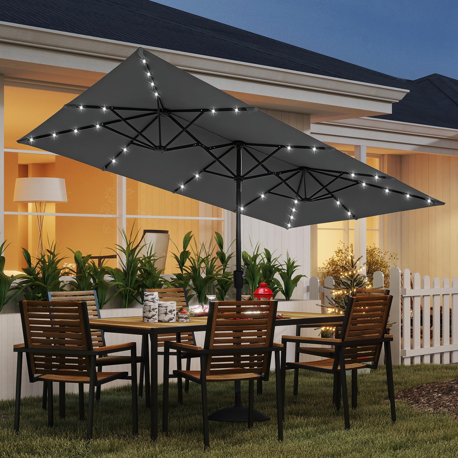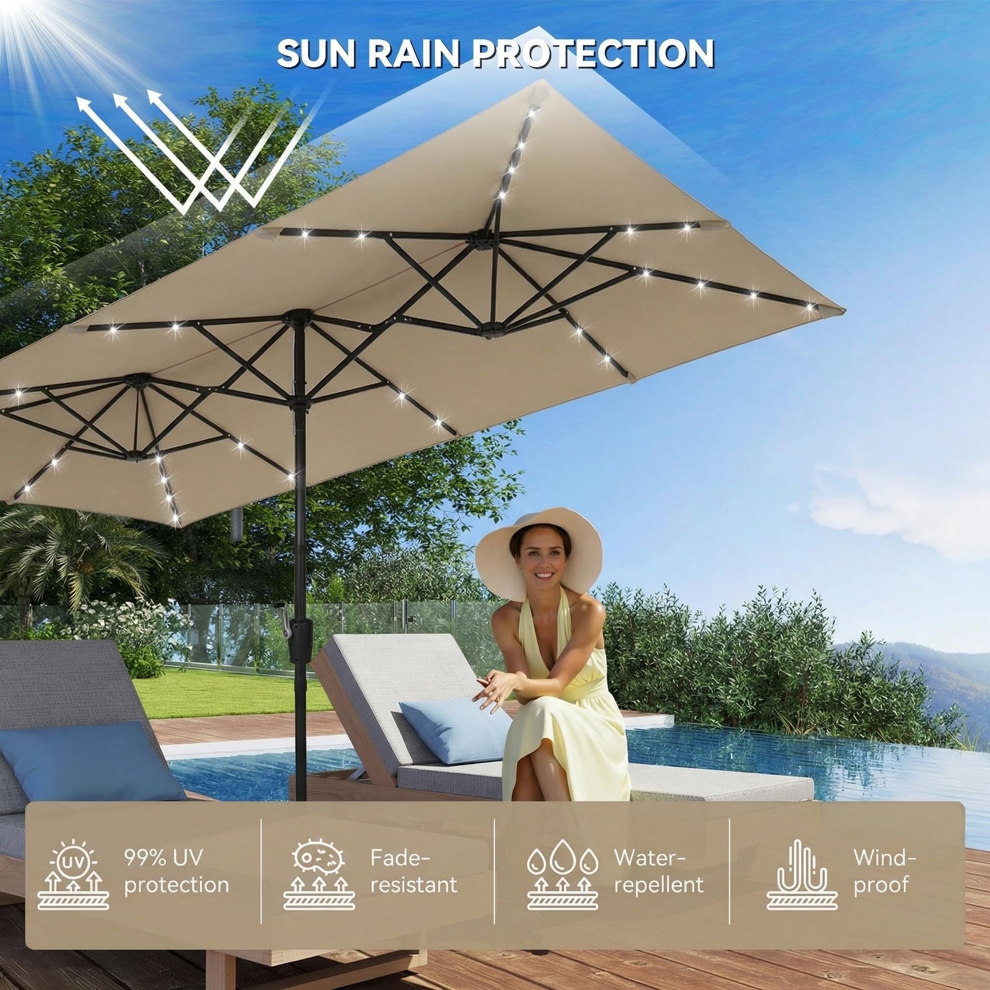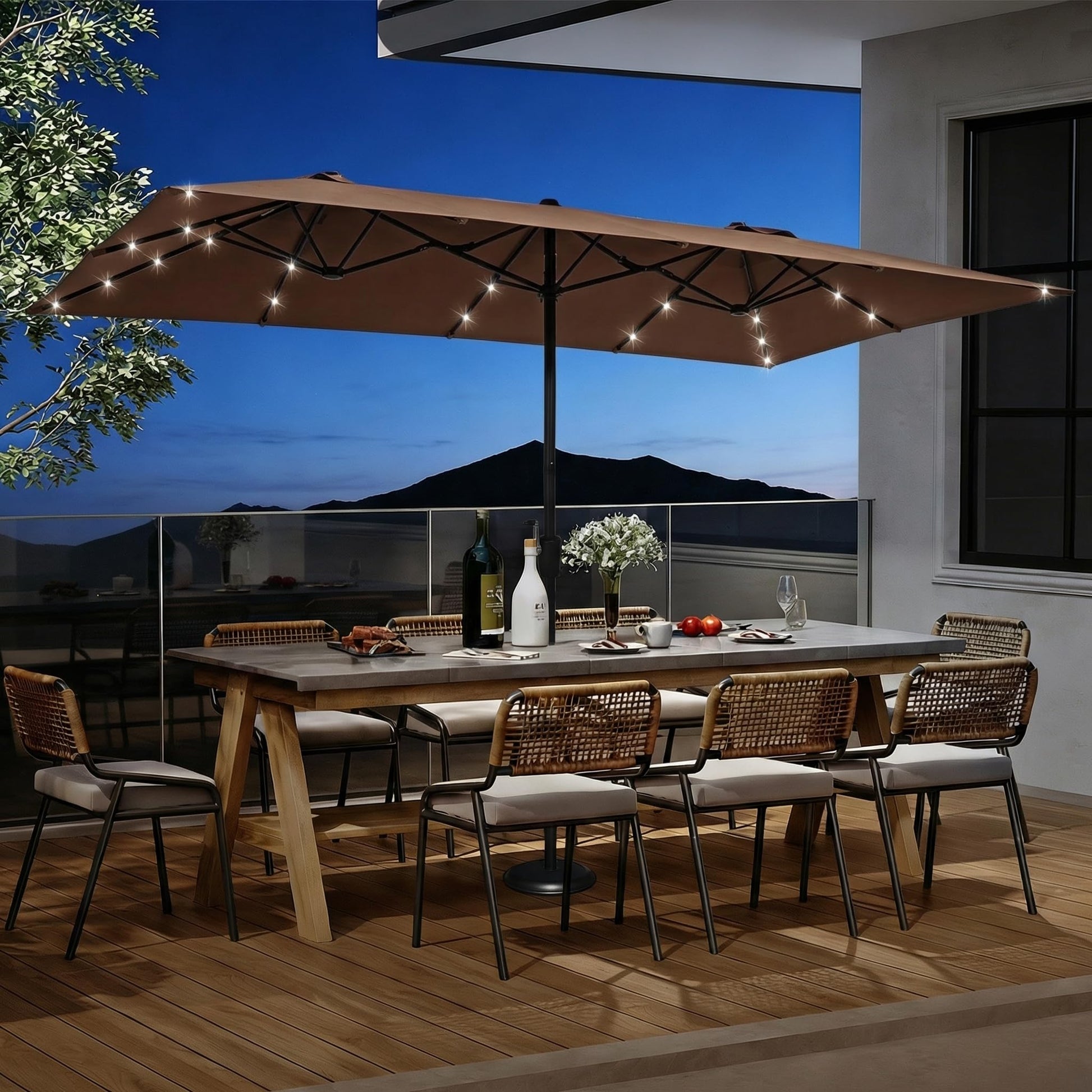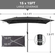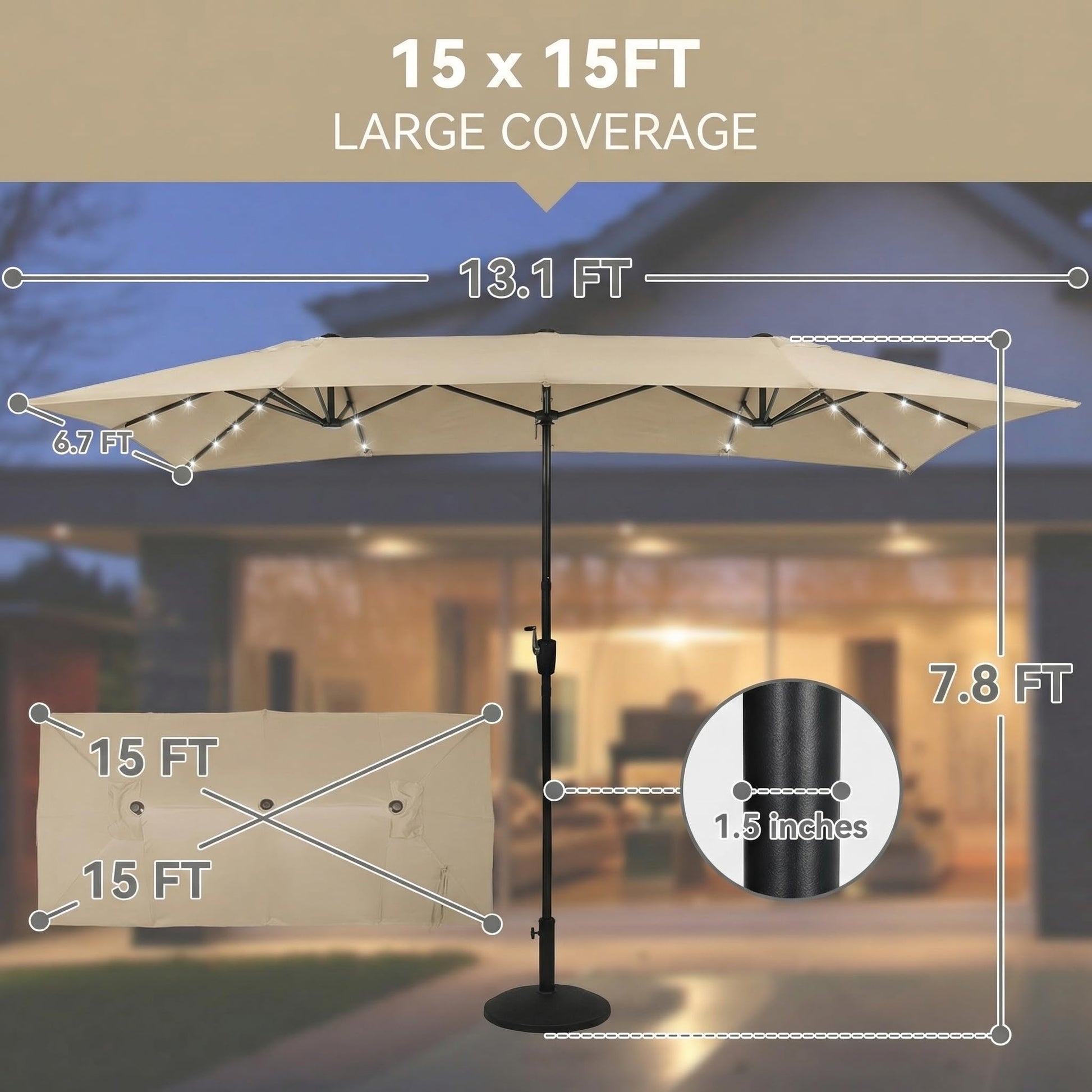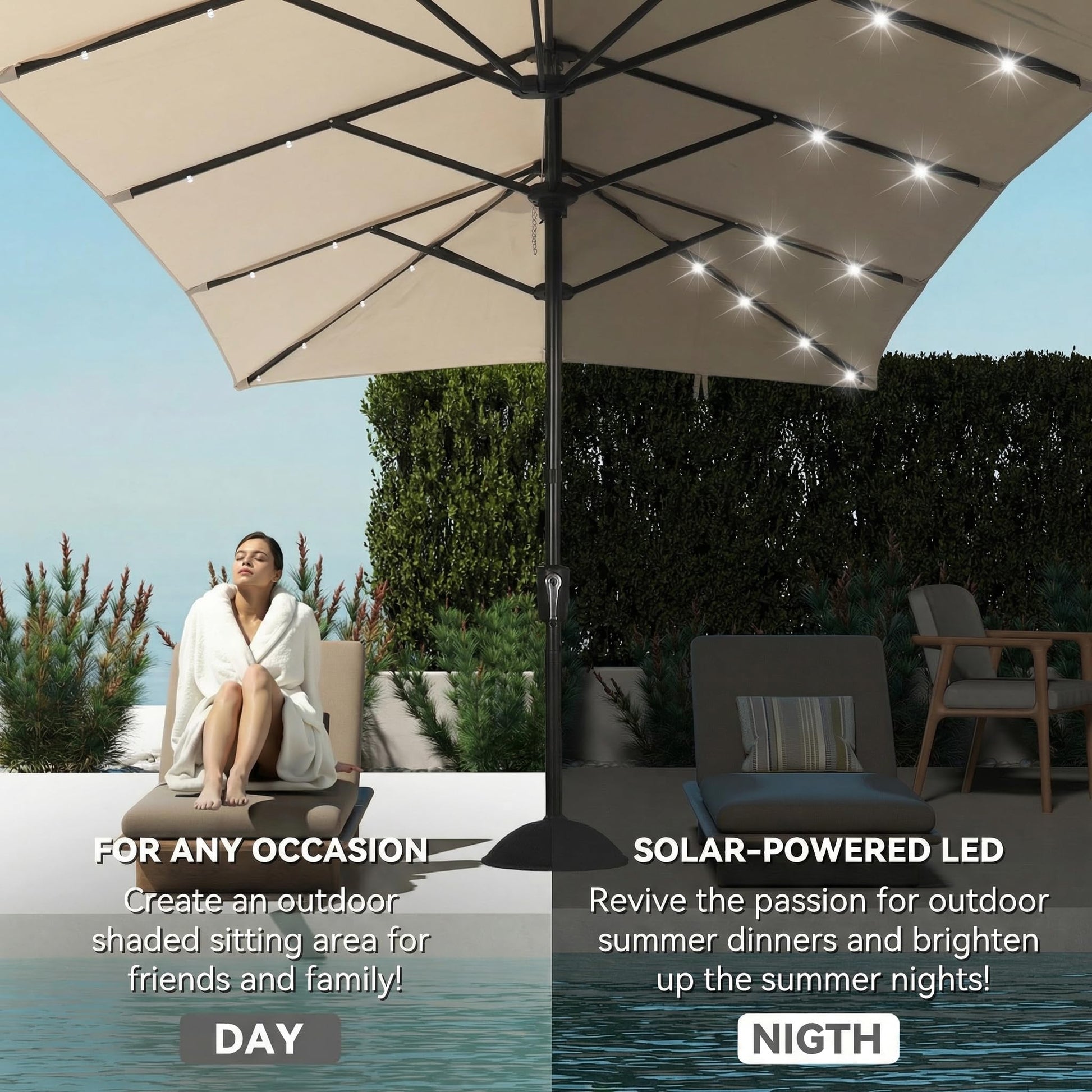 15ft Large Outdoor Rectangular Patio Umbrella with 36 Solar LED Light, Double Sided Outdoor Shade Umbrella with Crank Handle for Outside Deck,Backyard,Garden, without base