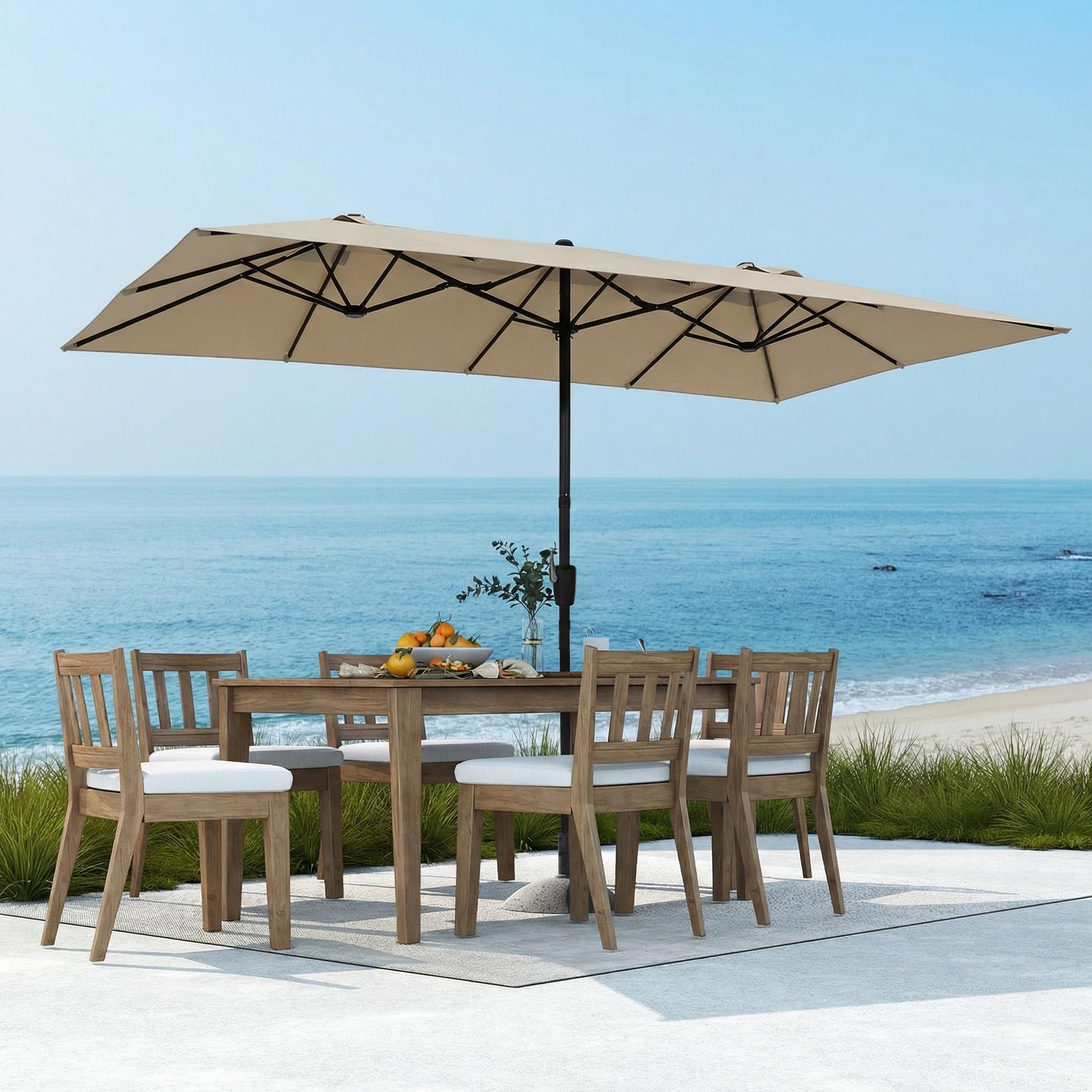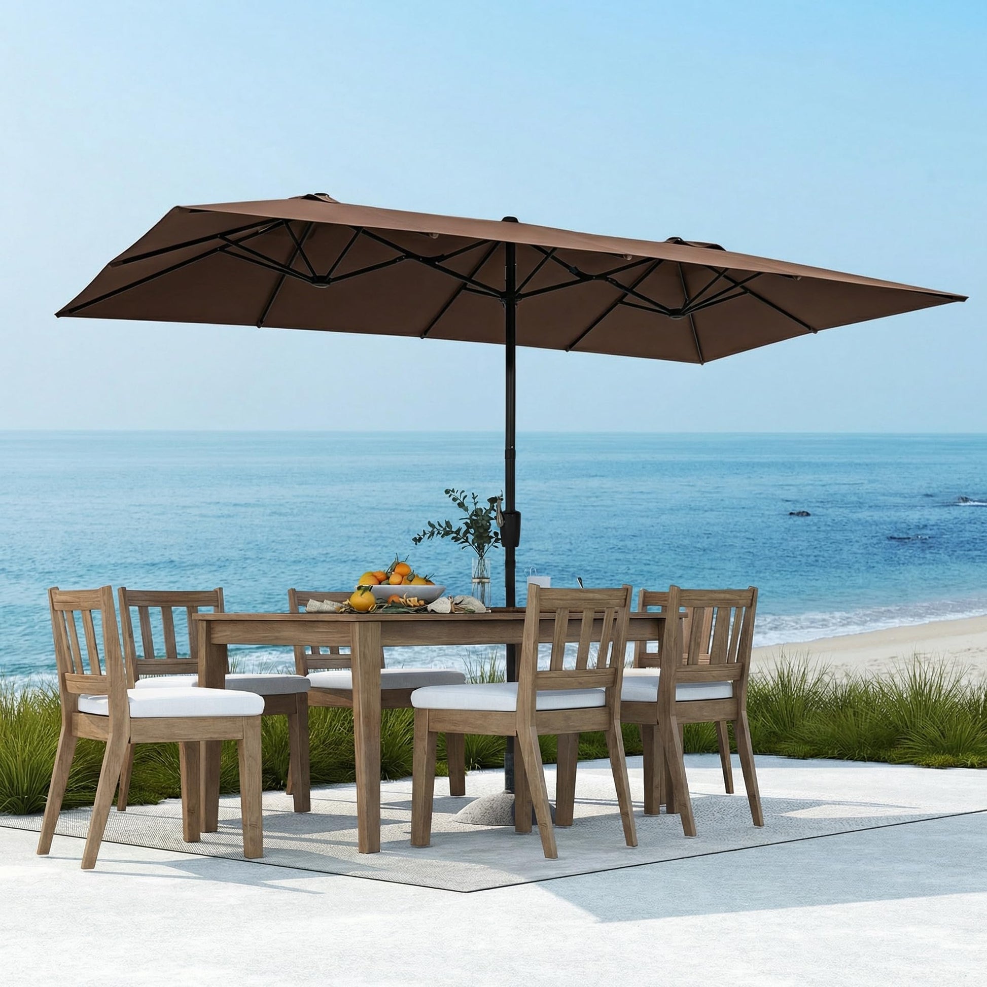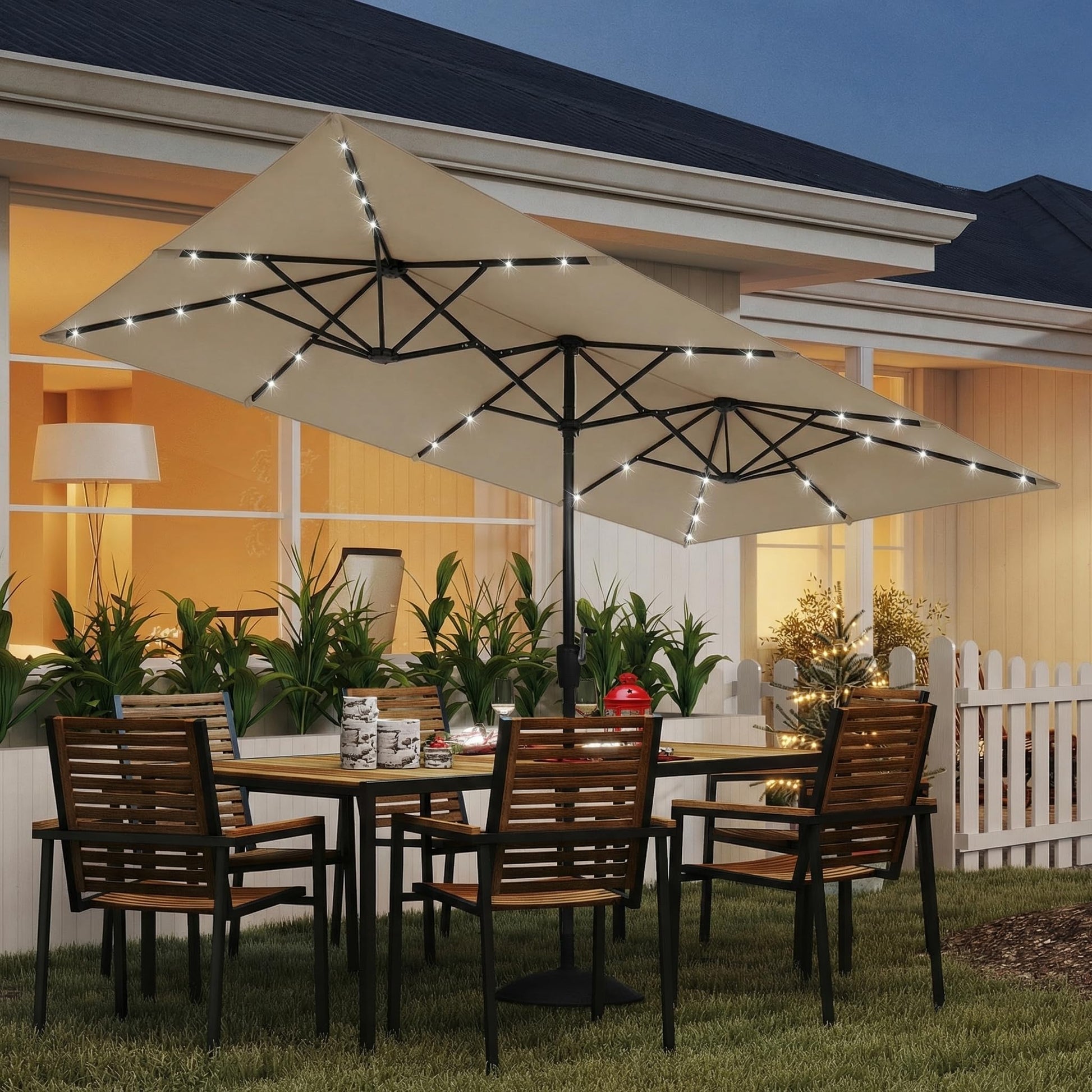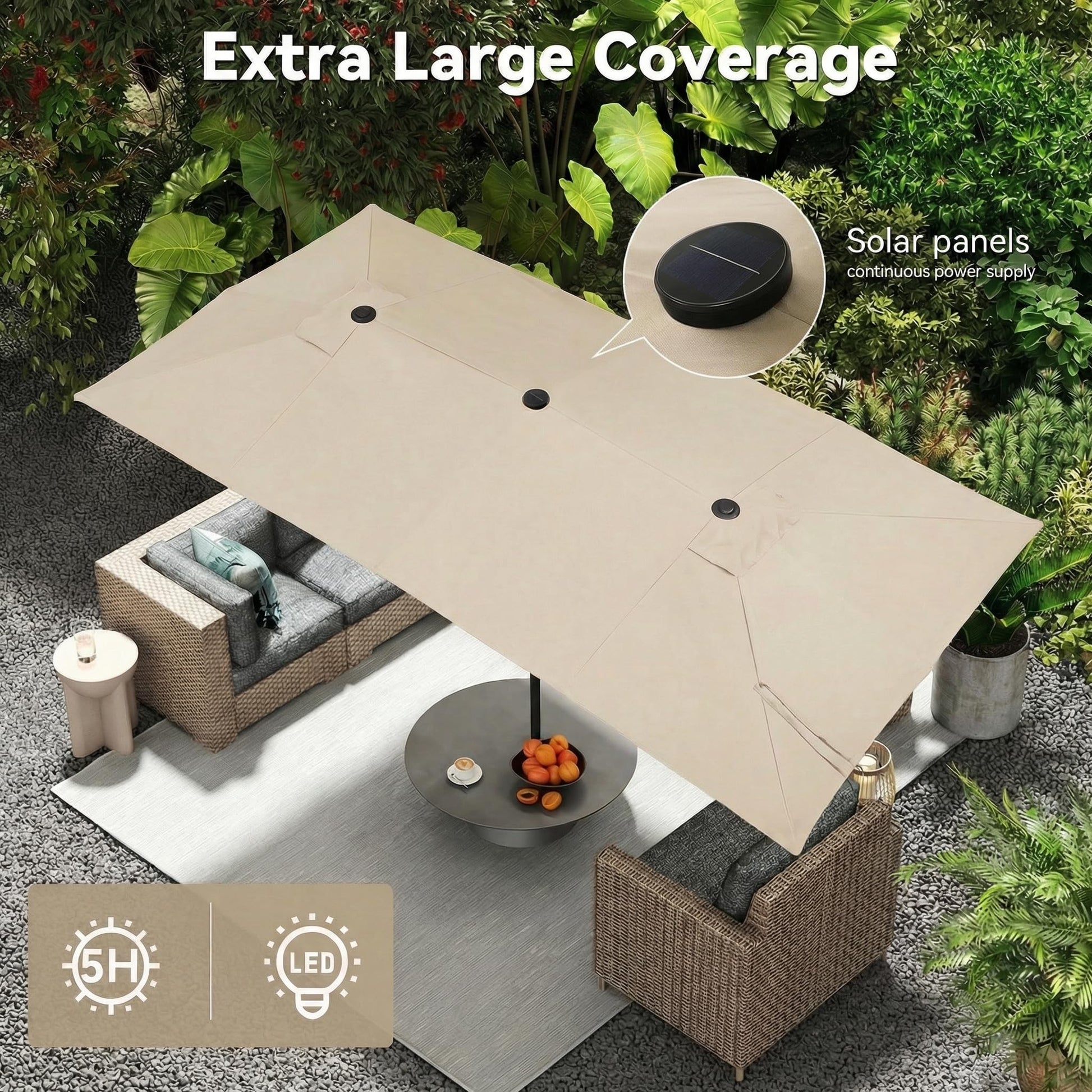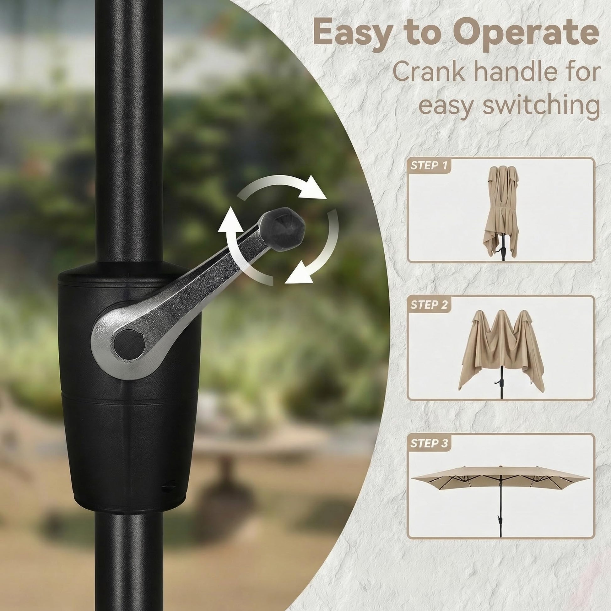 15ft Large Outdoor Rectangular Patio Umbrella with 36 Solar LED Light, Double Sided Outdoor Shade Umbrella with Crank Handle for Outside Deck,Backyard,Garden, without base