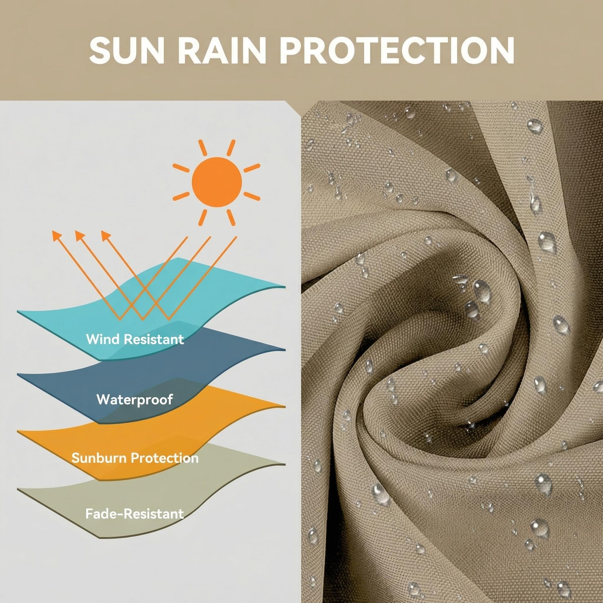 - High quality waterproof and sunproof : We use high quality waterproof and sunproof polyester fabric, which can effectively block UV rays and has a high SPF index, protecting you from UV damage. At the same time, the fabric has excellent waterproof performance, even in light rainy weather, the rain will quickly slide off and will not penetrate, ensuring that the space under the umbrella is dry and comfortable. This all-weather protection allows the parasol to work well in all weather conditions and adapt to more outdoor scenarios.