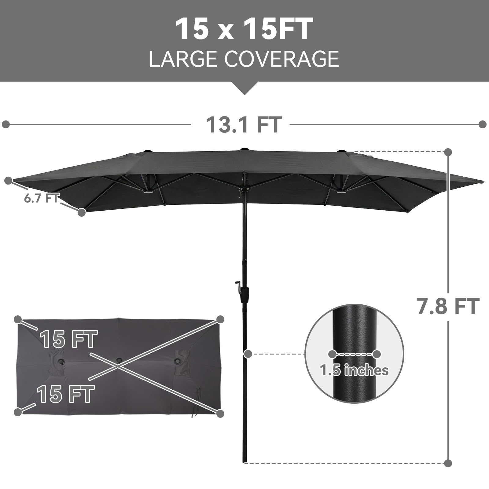 - Meet the needs of diverse venues : This 15ft sunshade umbrella adopts a unique multi-functional design, which is suitable for a variety of outdoor places. Whether it's a home backyard, deck, patio, or beach, park, outdoor restaurant, etc., it can be perfectly integrated to provide an ideal shade solution for your leisure space. Its extra-large size and solid construction allow it to display excellent shade in any venue.