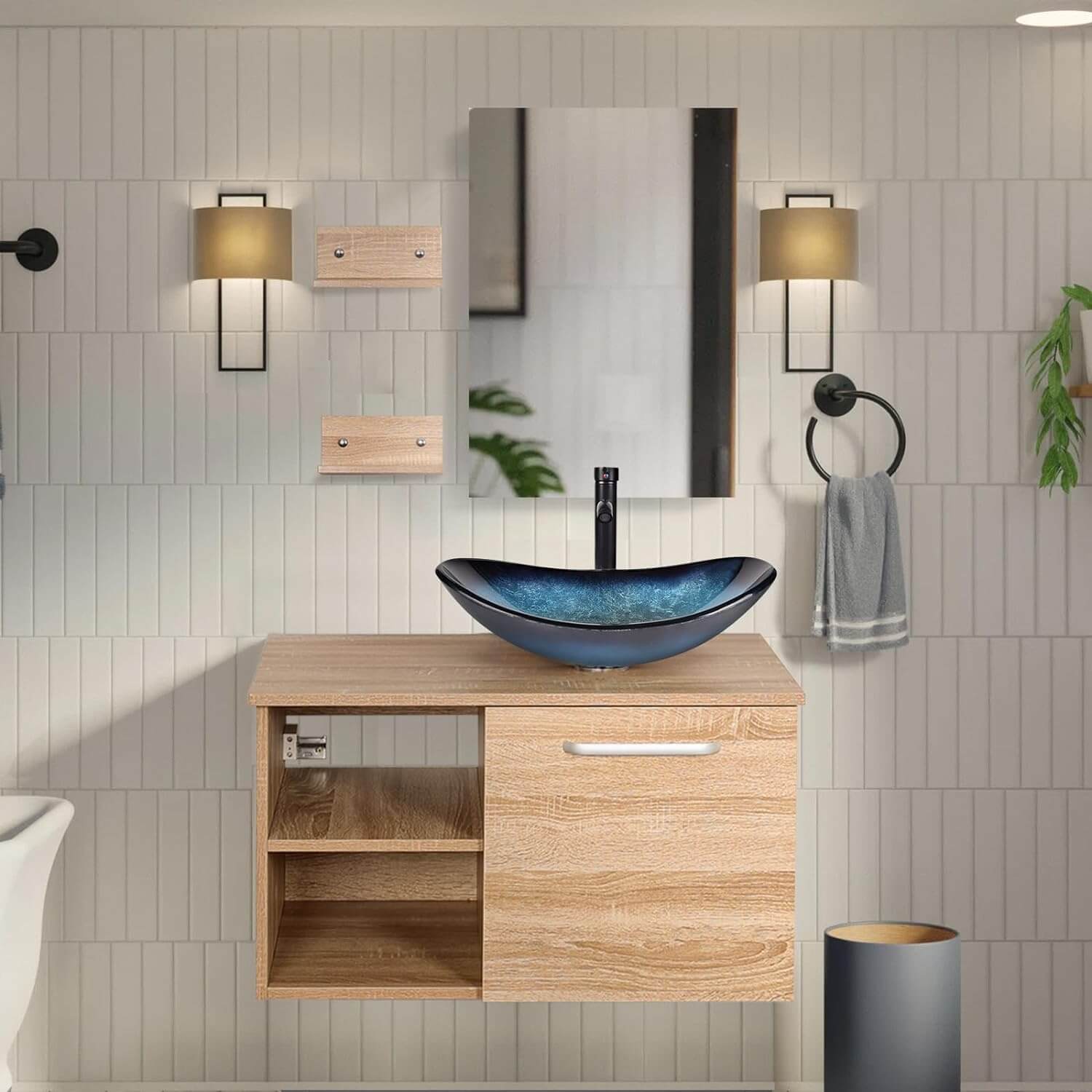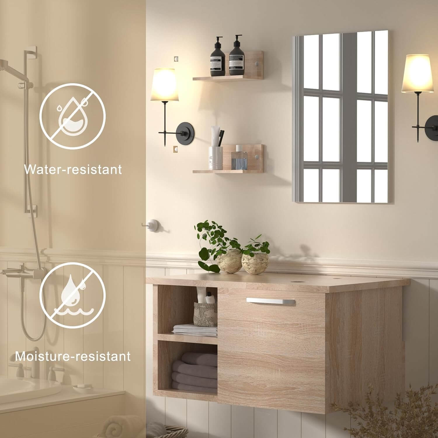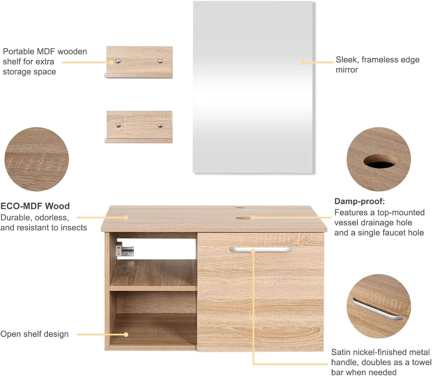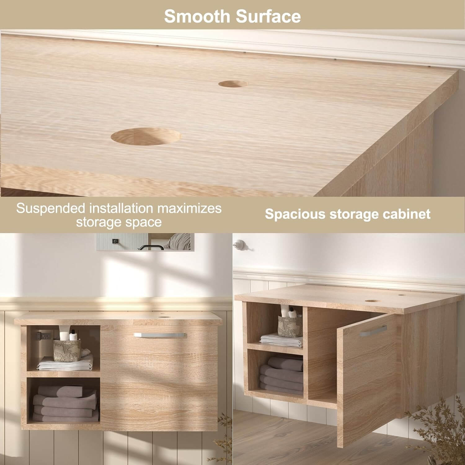 - 【Easy Assemble】:We have prepared the necessary accessories for your installation, including instructions,mirror,floating shelves water supply line, faucet and pop up drain. Now you can easily replace the entire bathroom vanity with sink in your home.