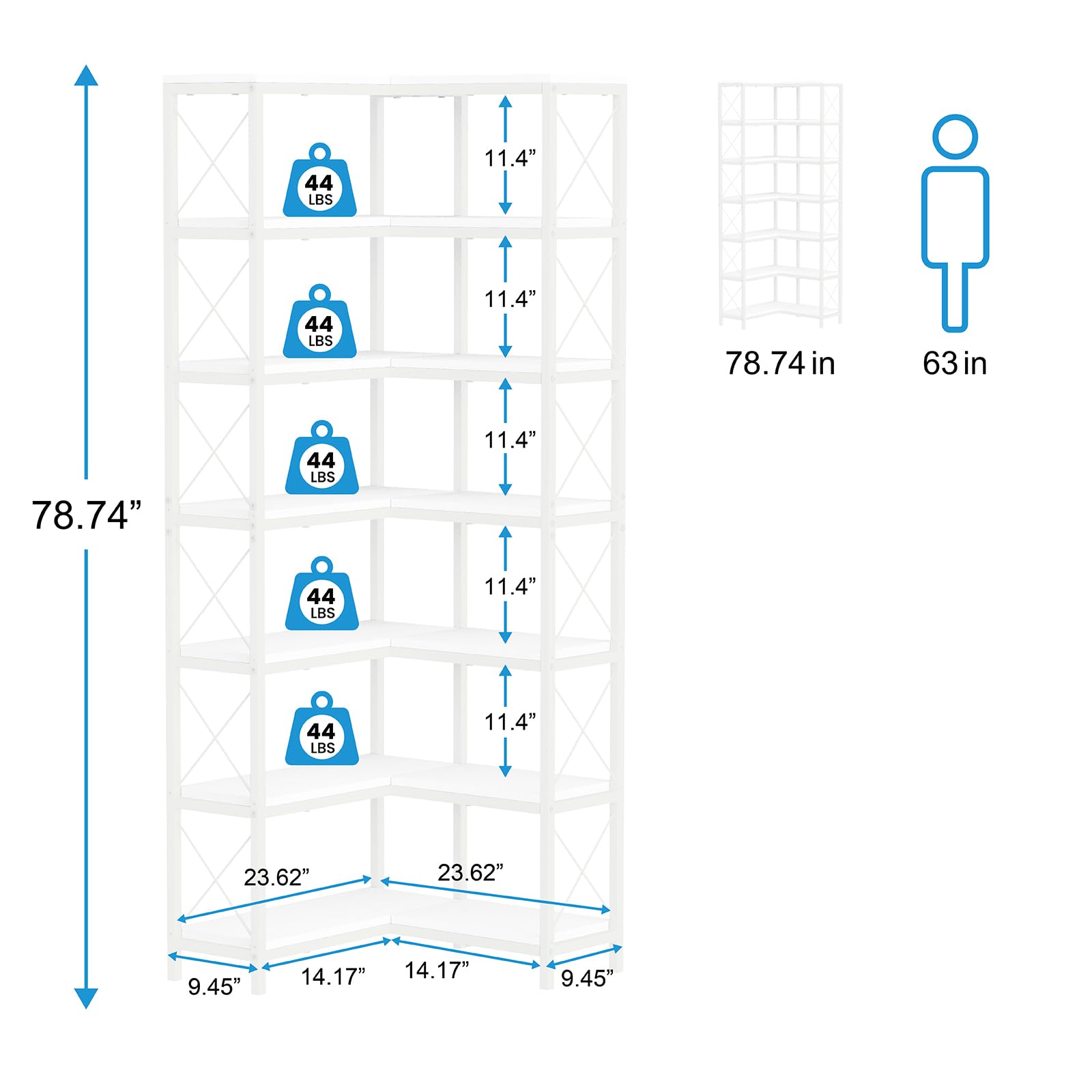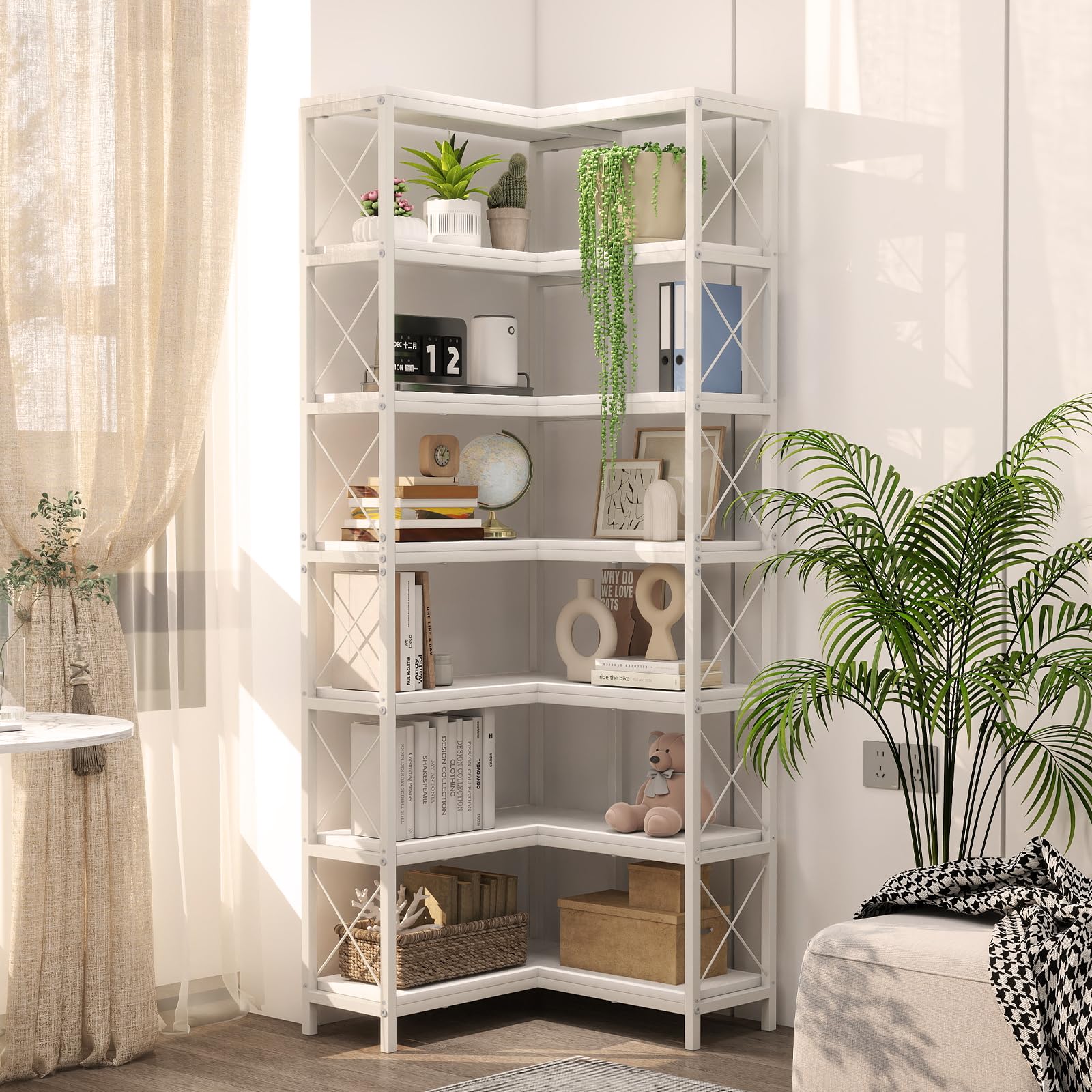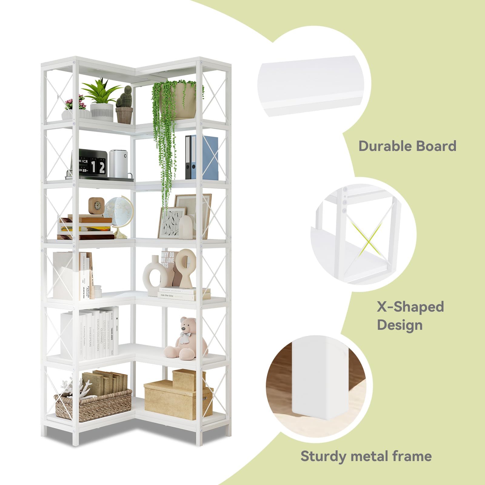 - 7 Tiers Storage Space: 7 tiers of open neat shelf design, each tier spacing 11.4 inches, can be used to store books, decorative items, plants, with powerful storage and display functions.The bookshelf can provide additional storage display space to meet your diversified needs.