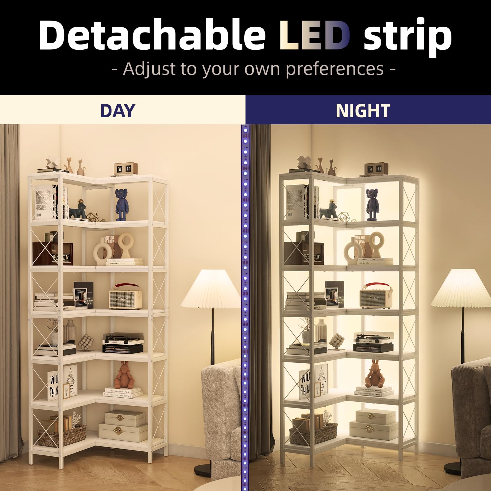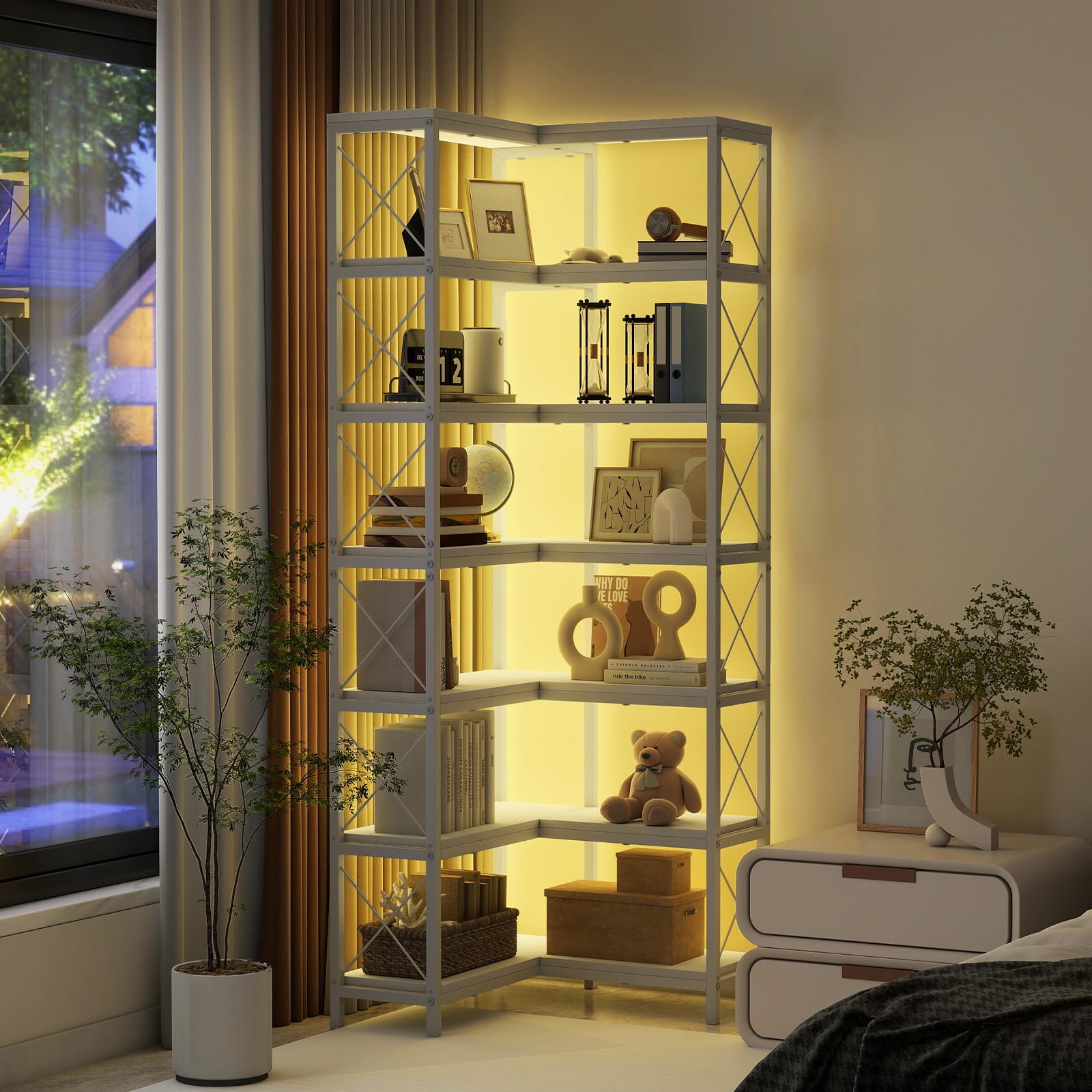 7-Tier Corner Bookshelf with LED Light Strips IF076