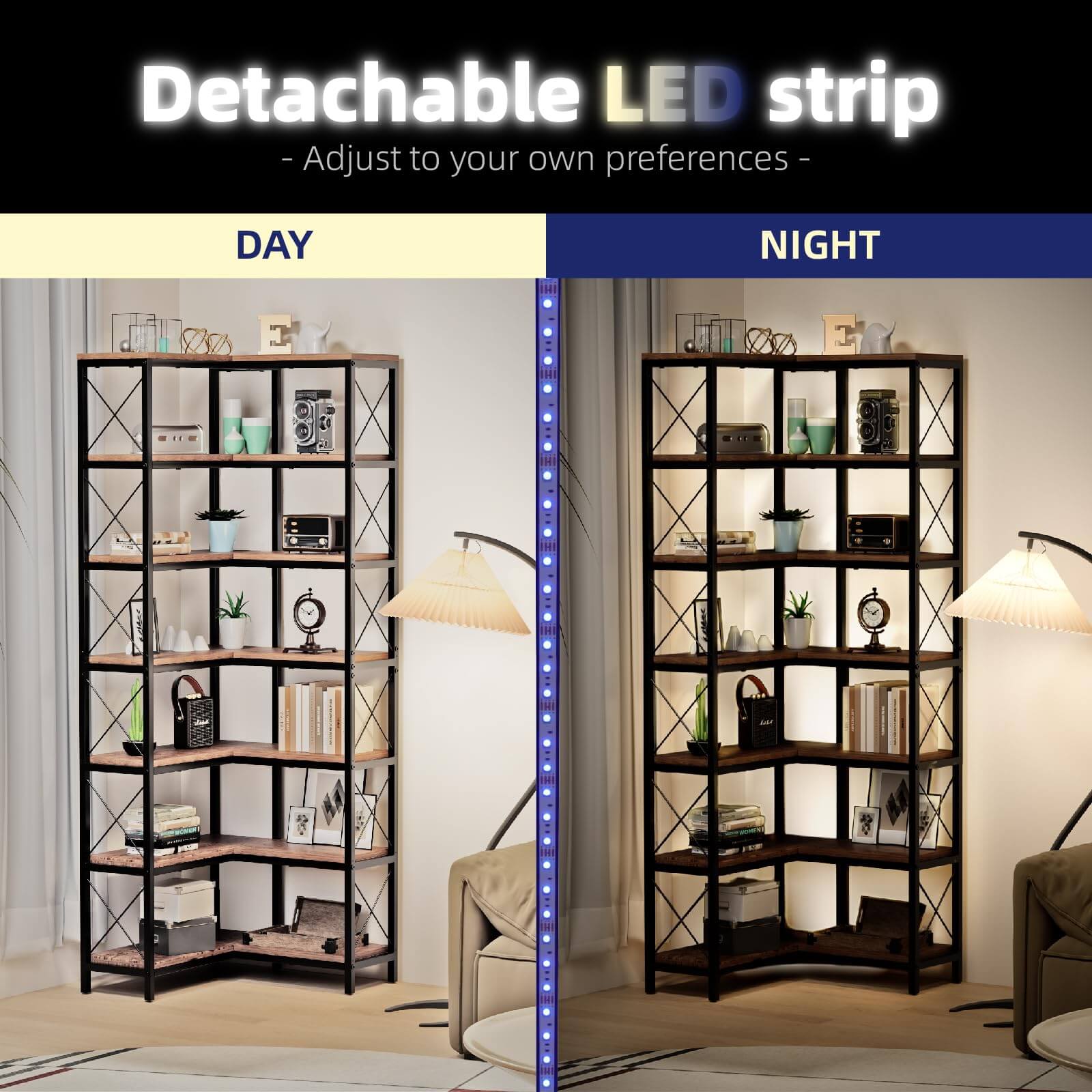 Detachable LED strip : The corner bookshelf is paired with 16ft of detachable LED light strips. You can install the light strip according to your needs and DIY a unique bookshelf. The light strip has a total of 7 colors and 8 modes that can be adjusted. Quickly switch light colors with the control buttons to create different atmospheres depending on the scene.