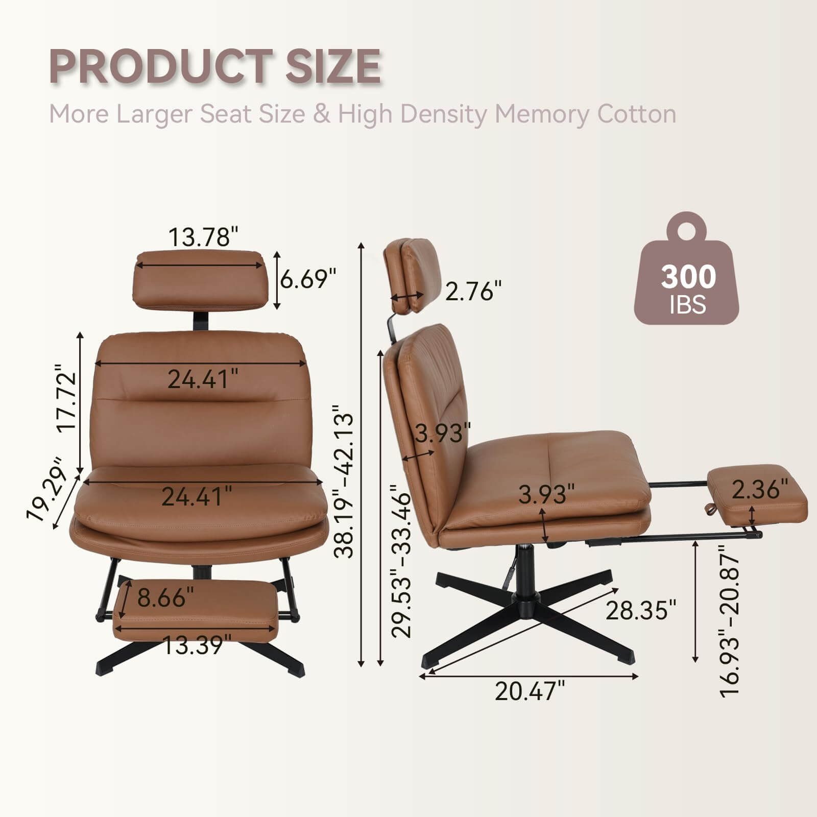 - 【Comfortable PU Wider Seat】Wider PU leather seat allows for comfortable seating in a cross-legged position. The 25.21"seat width and 19.69" seat depth offer ample space and enhanced comfort. The backrest and seat are padded with comfortable doll cotton for enhanced softness, comfort, and prolonged sitting. Crafted from high-quality PU leather, it is not only waterproof but durable and easy to clean. Moreover, this chair features an SGS certified class 3 gas lift that can support up to 300 lbs.✨