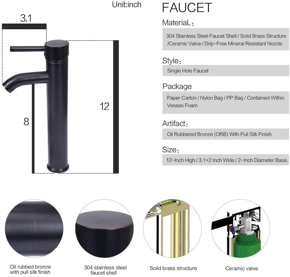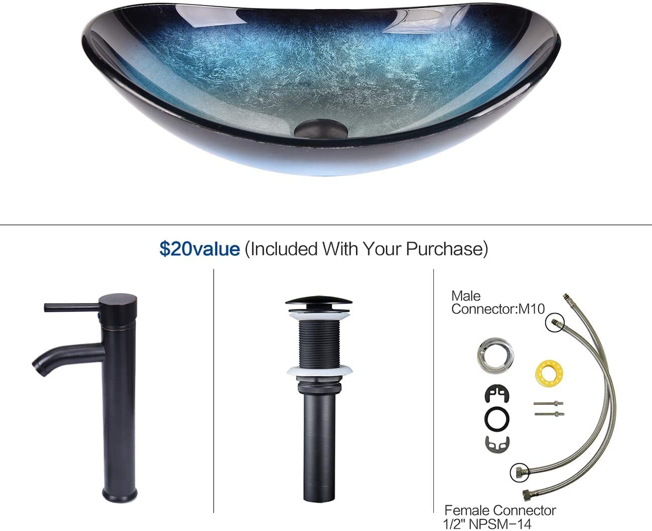 - 【Come with All You Need】Unlike other brand that provide only the sink, our Vessel Sink comes with an ORB faucet, pop-up drain, cold and hot water lines, and a screw packet. No need to spend extra money on other accessories!
