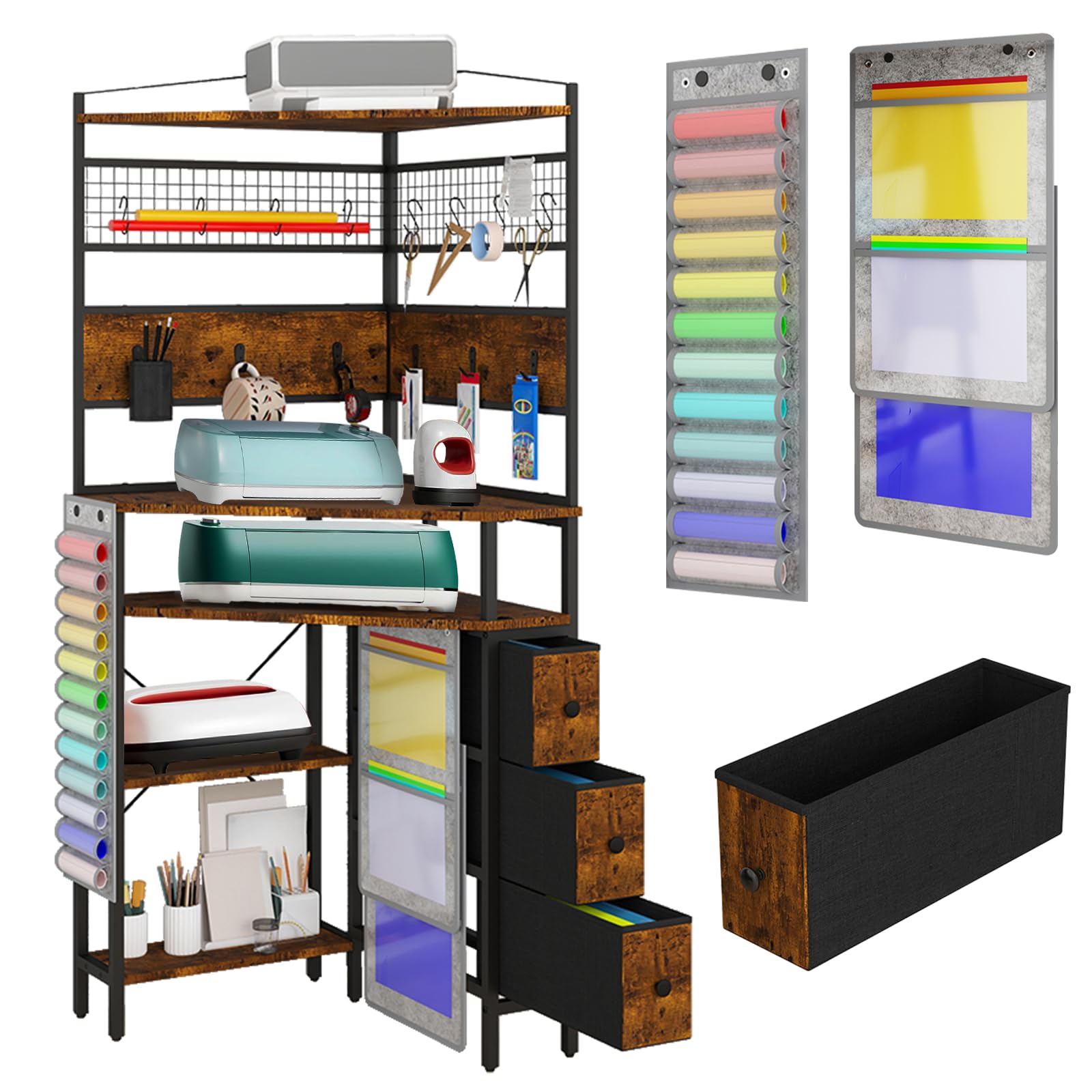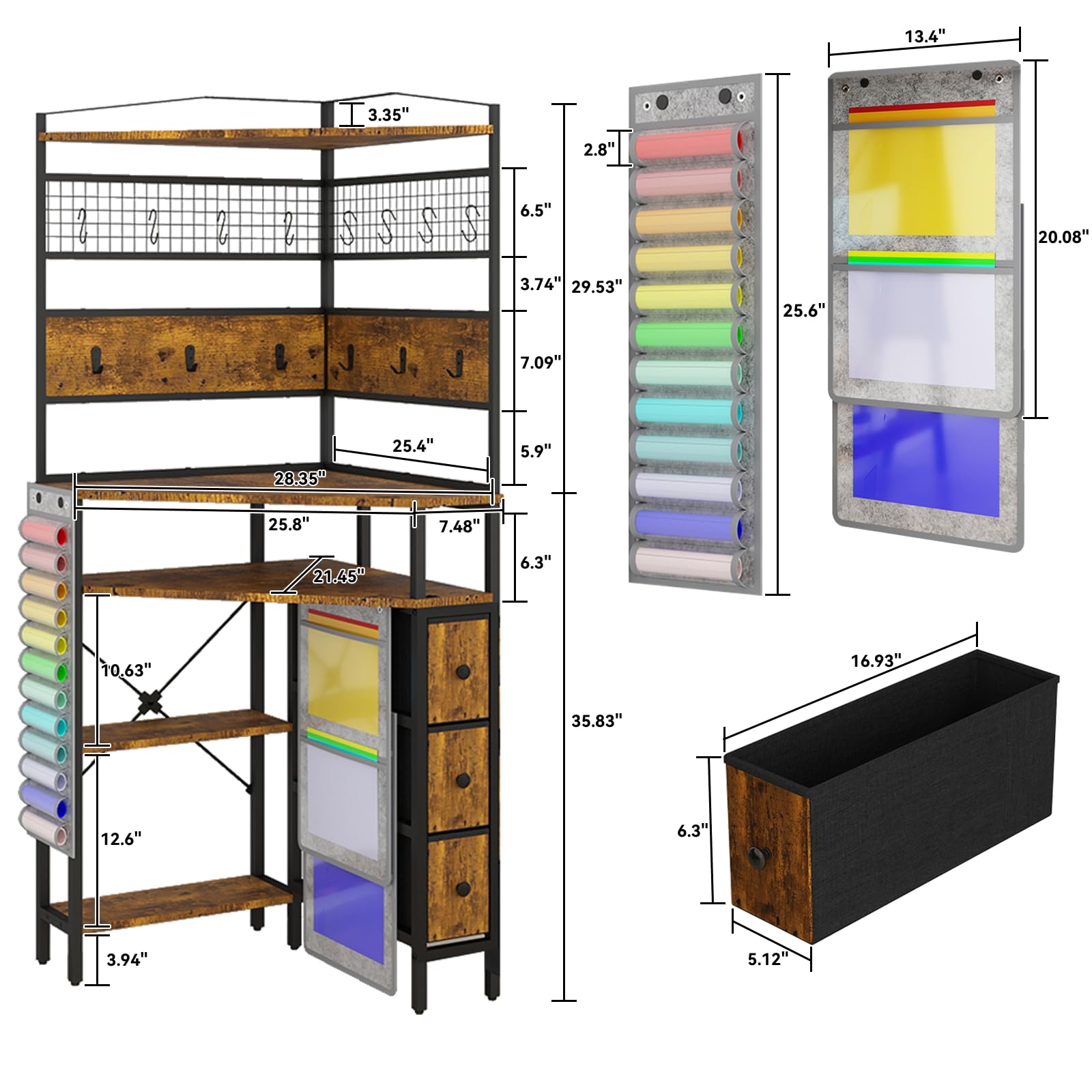 Craft Organizers and Storage Cabinet Brown Craft Table with Drawer Sewing Table with Fold Out Craft Desk for Vinyl Roll Holder for Craft Room IF194
