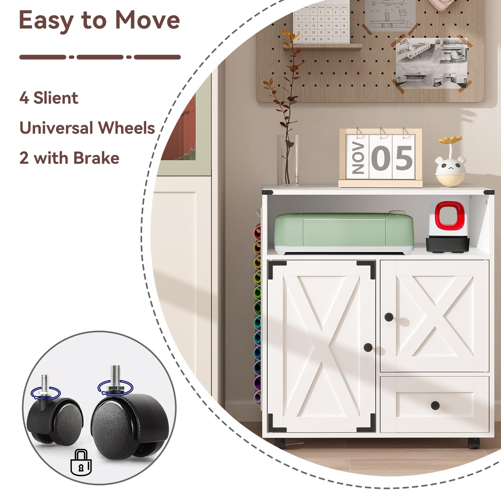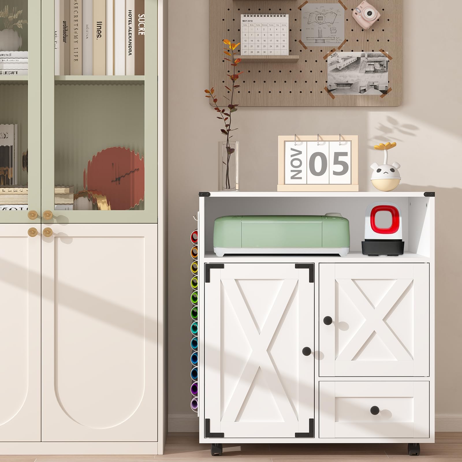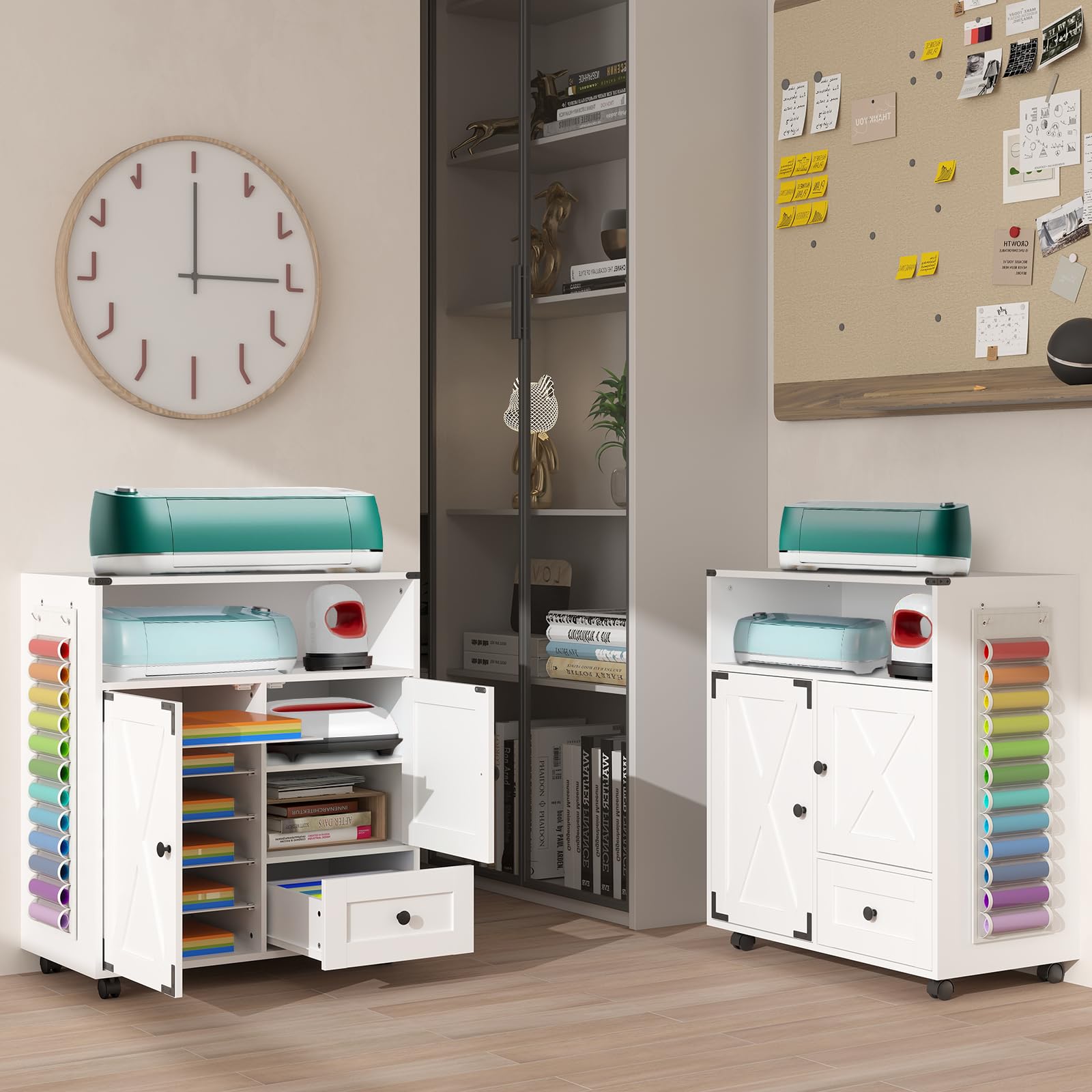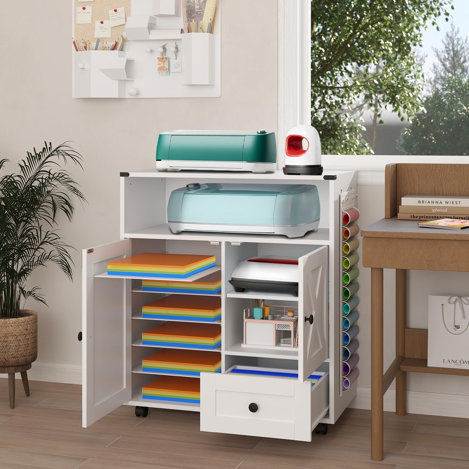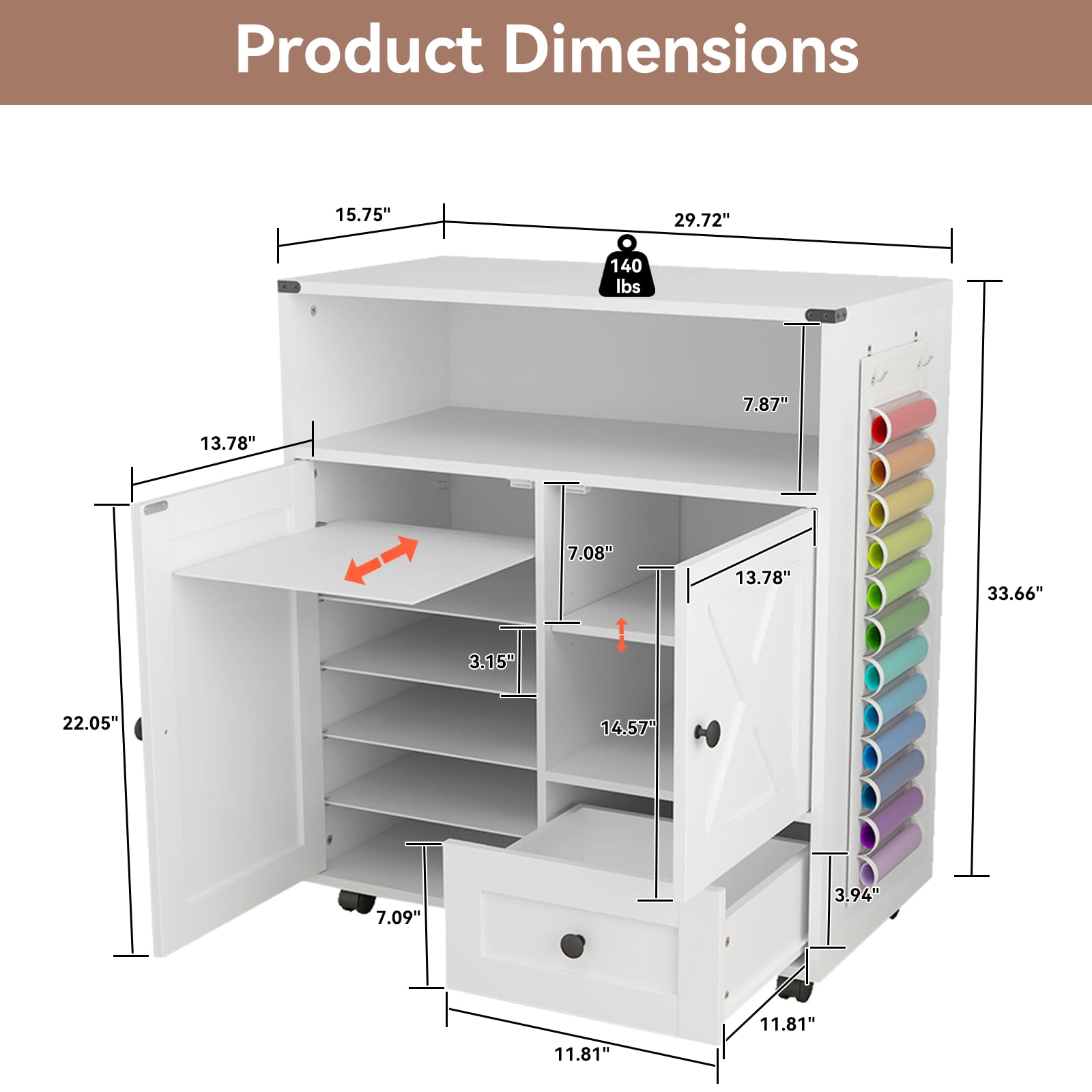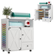 Craft Organizers and Storage Cabinet White Craft Table with Drawer Sewing Table with Fold Out Craft Desk for Vinyl Roll Holder for Craft Room IF173