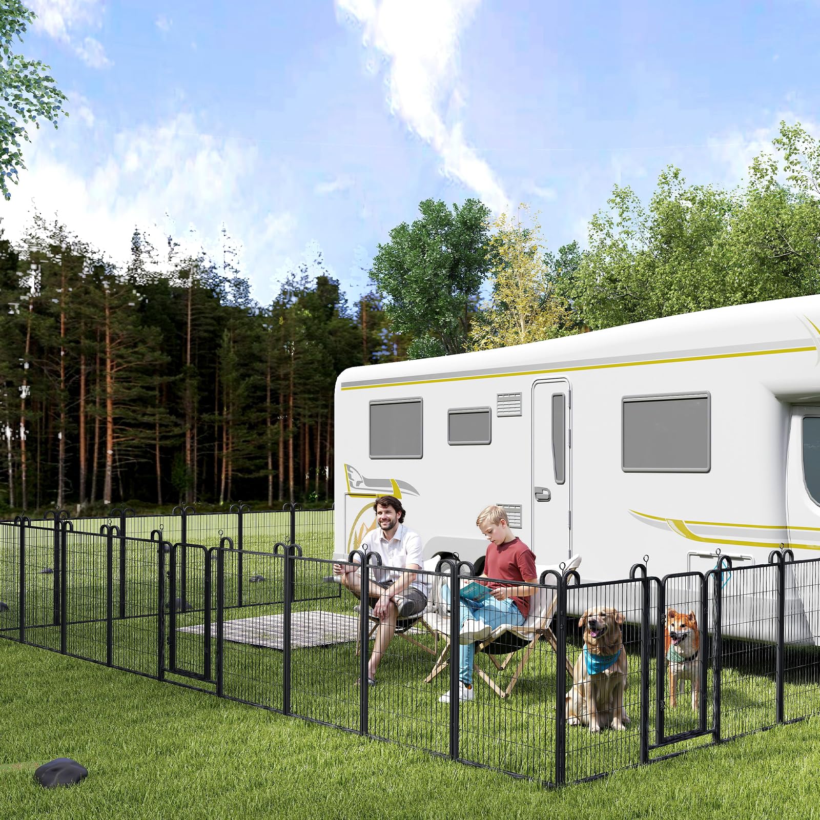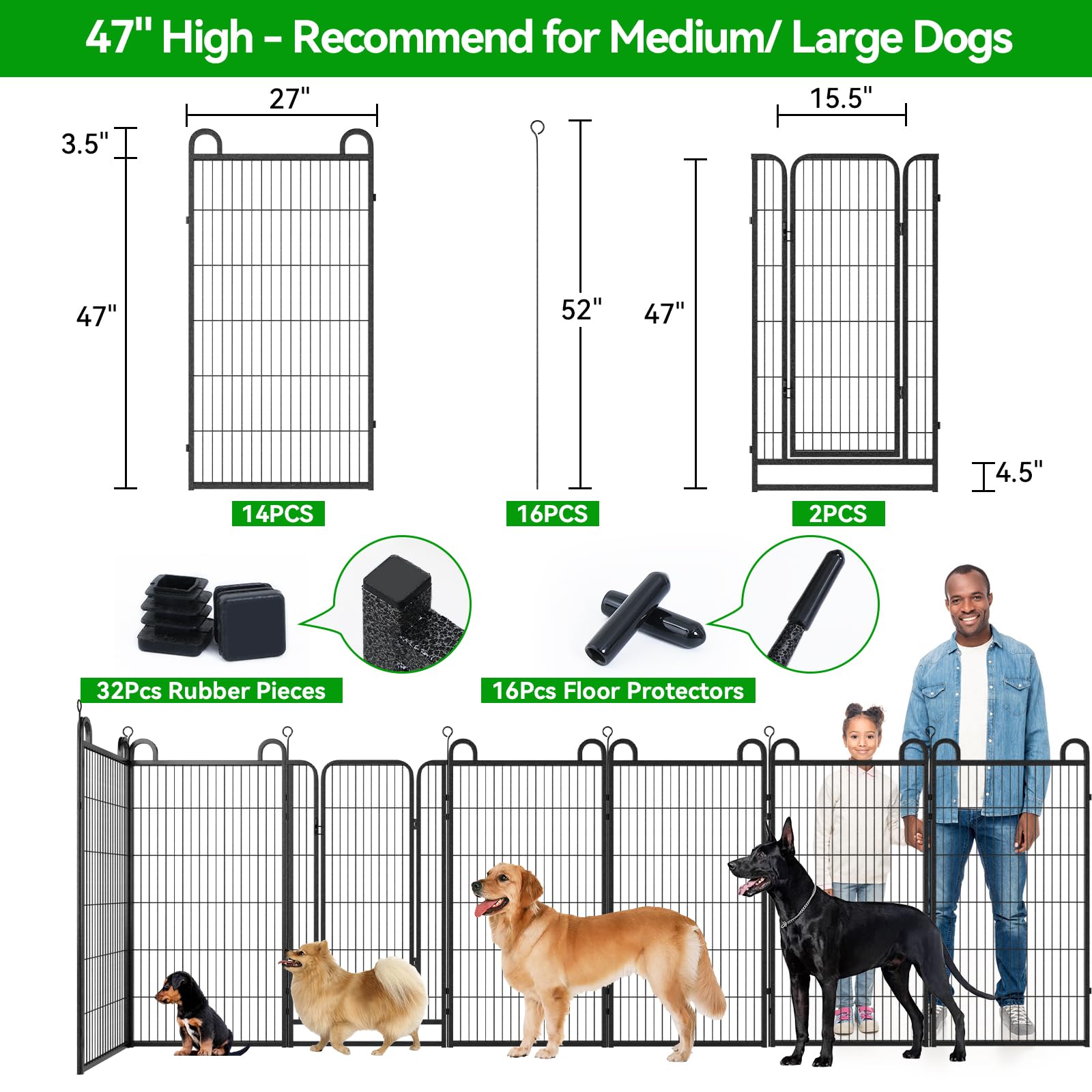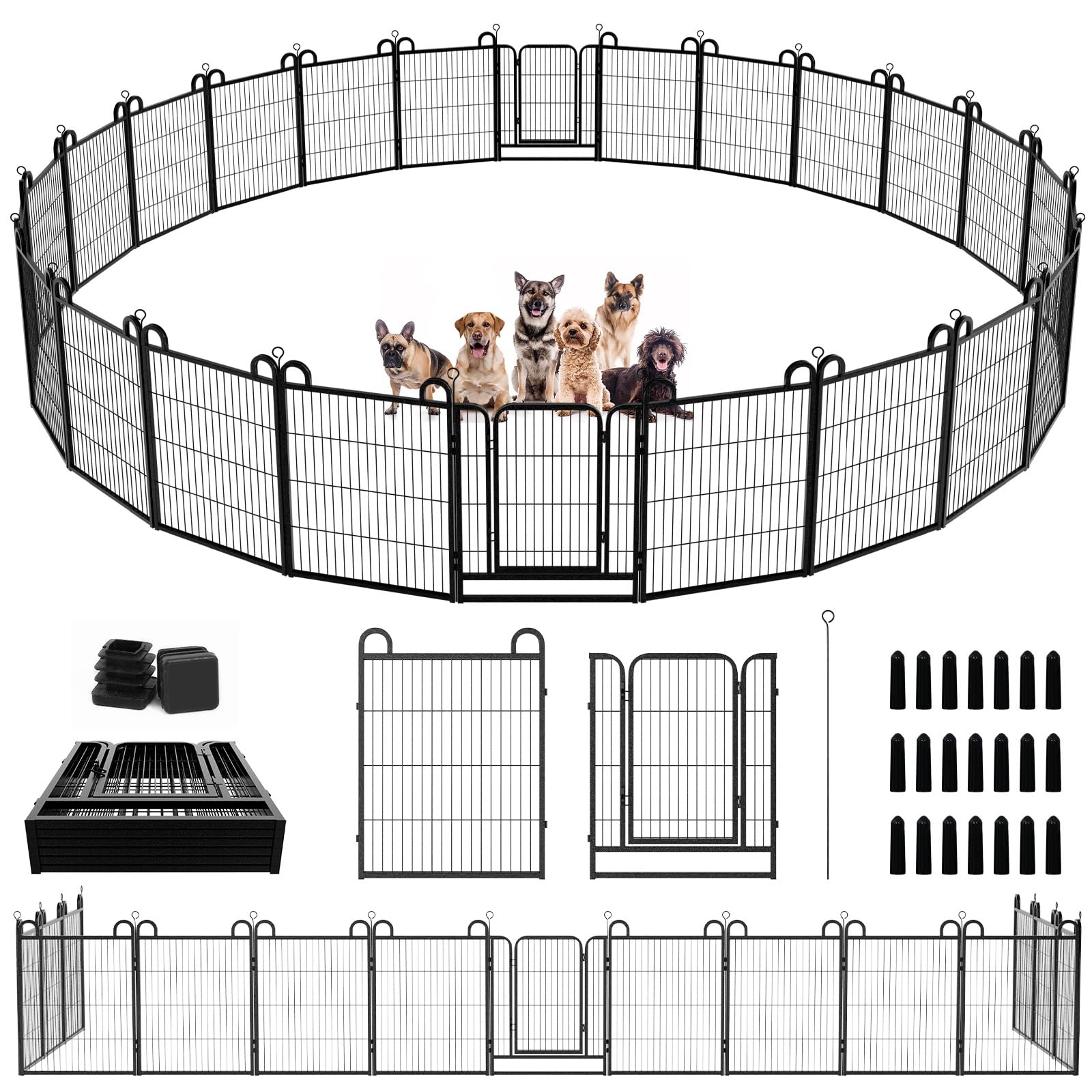 - 【Easy to Set Up & Multiple Combinations】The panels come with individual poles to connect them together, easy to set up or take it down in minutes, dog fence can do multiple combinations and configurations, dog playpen for the yard easily conforms to different shapes according to your garden or room, circle, polygon, irregular, etc