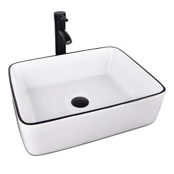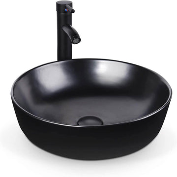Elecwish 24” Black Bathroom Cabinet with White Ceramic Vessel Sink SetPremium Ceramics : Elecwish vessel sinks for bathroom made from high quality premium ceramics .Scratch-resistant ceramic makes cleaning the sink easier while maintaining lasting beauty. Sink dimension: 19.3''L x 15.2’' W x 5.3'' H, Bowl thickness: 0.5". 24" Bathroom Vanity:The dimensions of the bathroom cabinet are: 24" x 19" x 32.3", made of E1 grade MDF board, which makes the whole bathroom cabinet waterproof and wearable, and it can be used for a long time even in wet environment. |