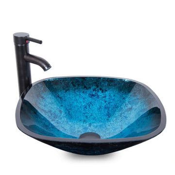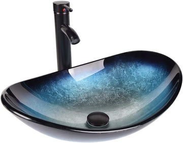 🔍LINK: Vanity with Blue Boat Glass Sink