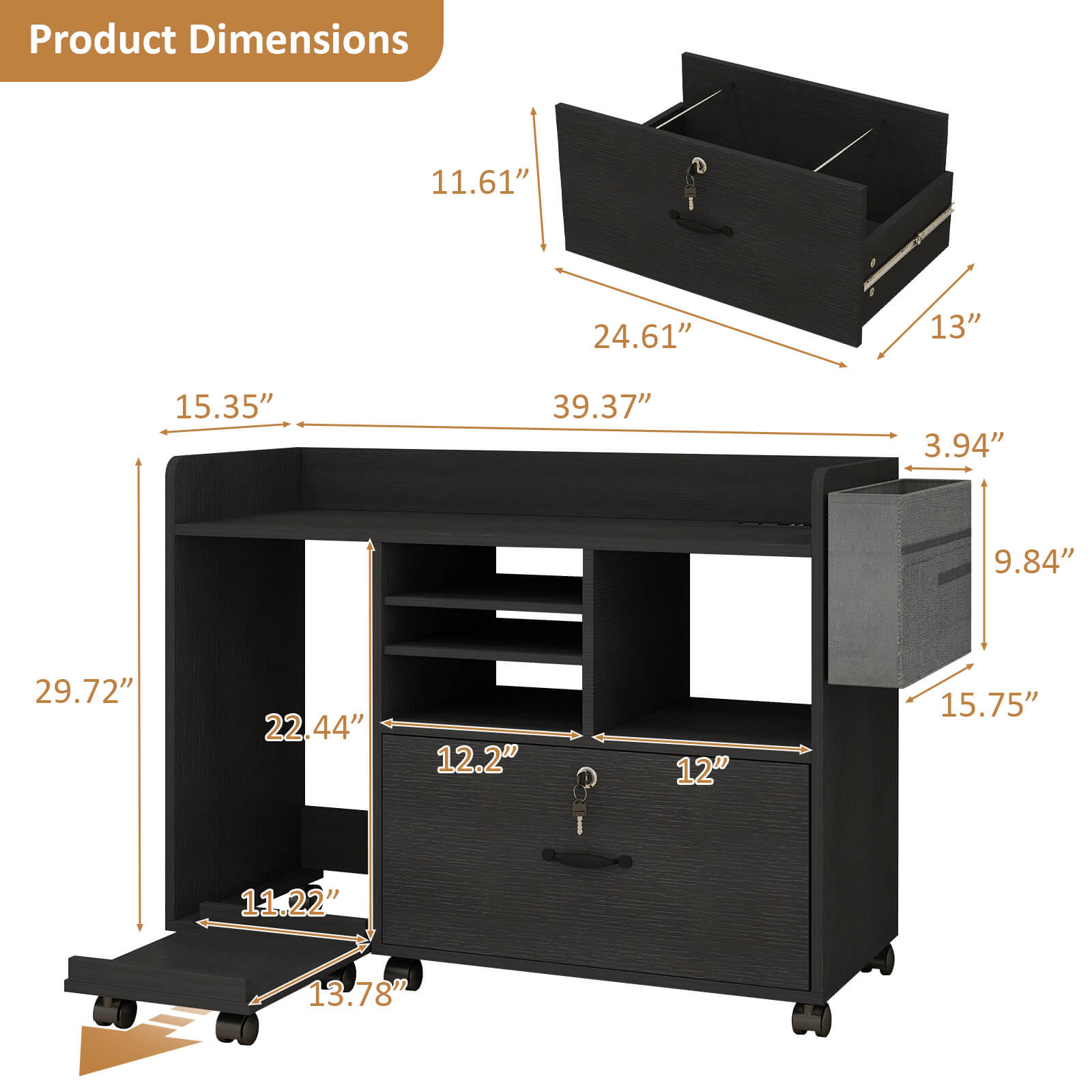 - Multi-function: This rolling printer is equipped with a lockable drawer to increase the security of file storage and protect the privacy of your business