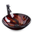 Elecwish Vessel Sinks Bathroom Artistic Vessel Sink Glass Bowl Drain Faucet Combo,Flame Red