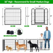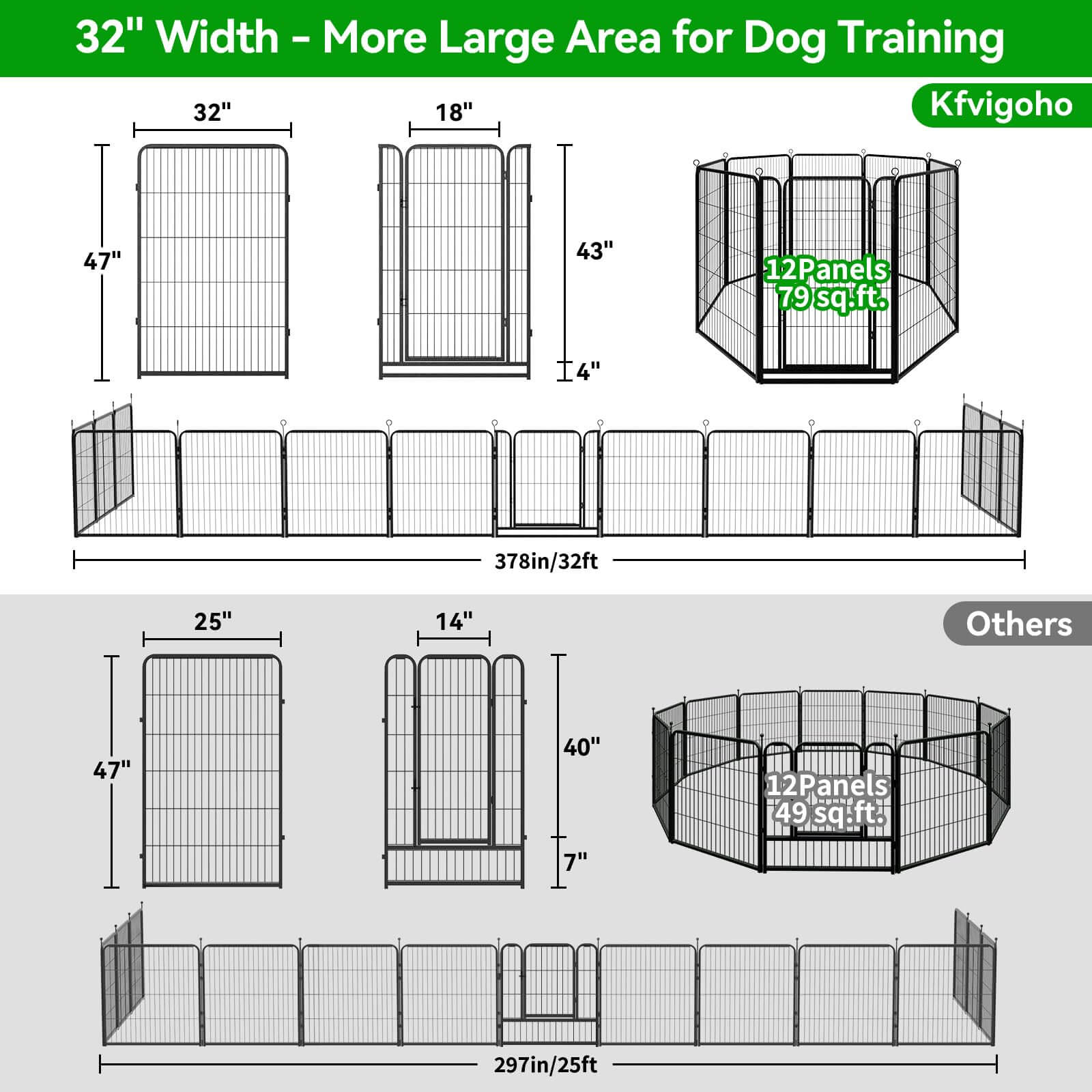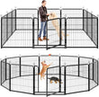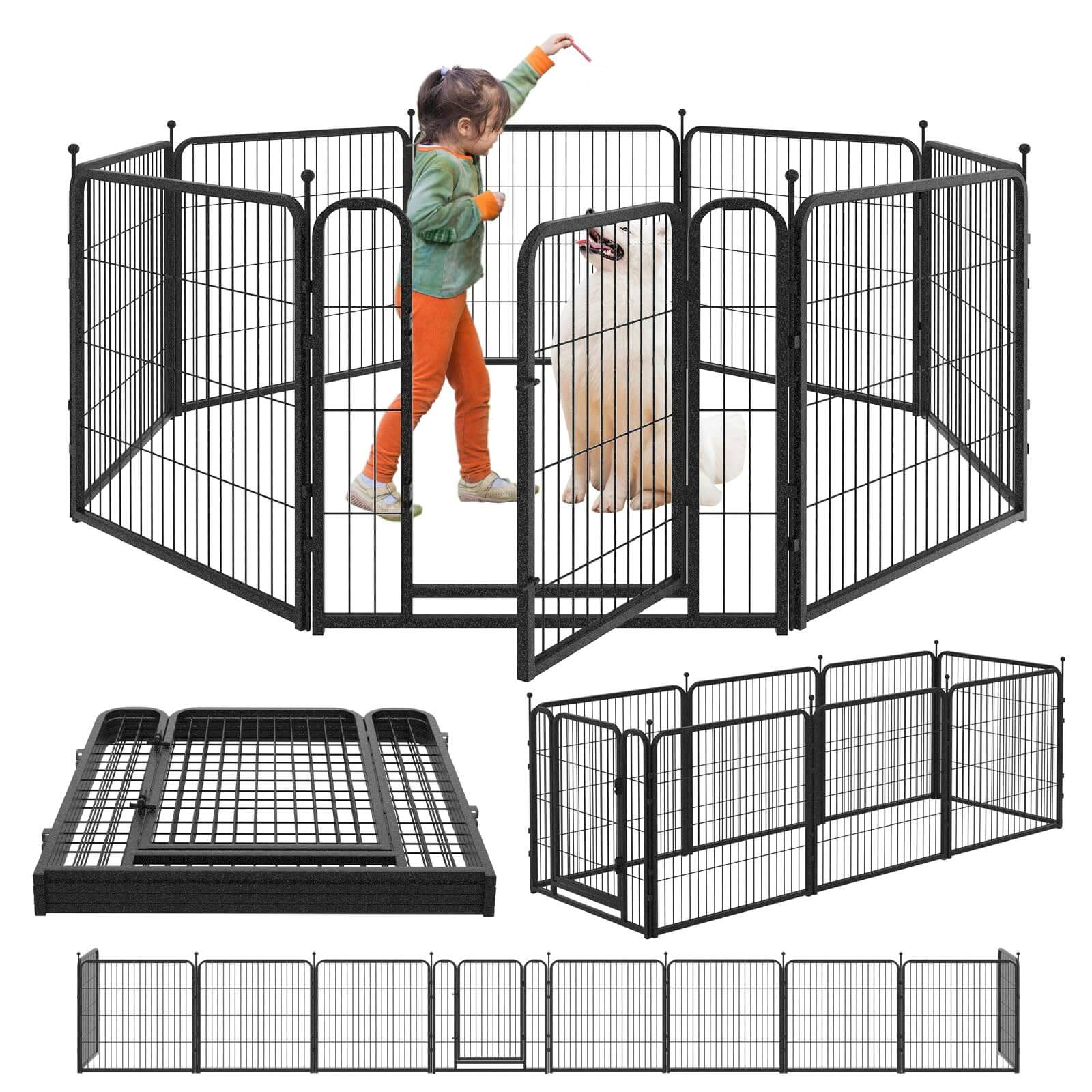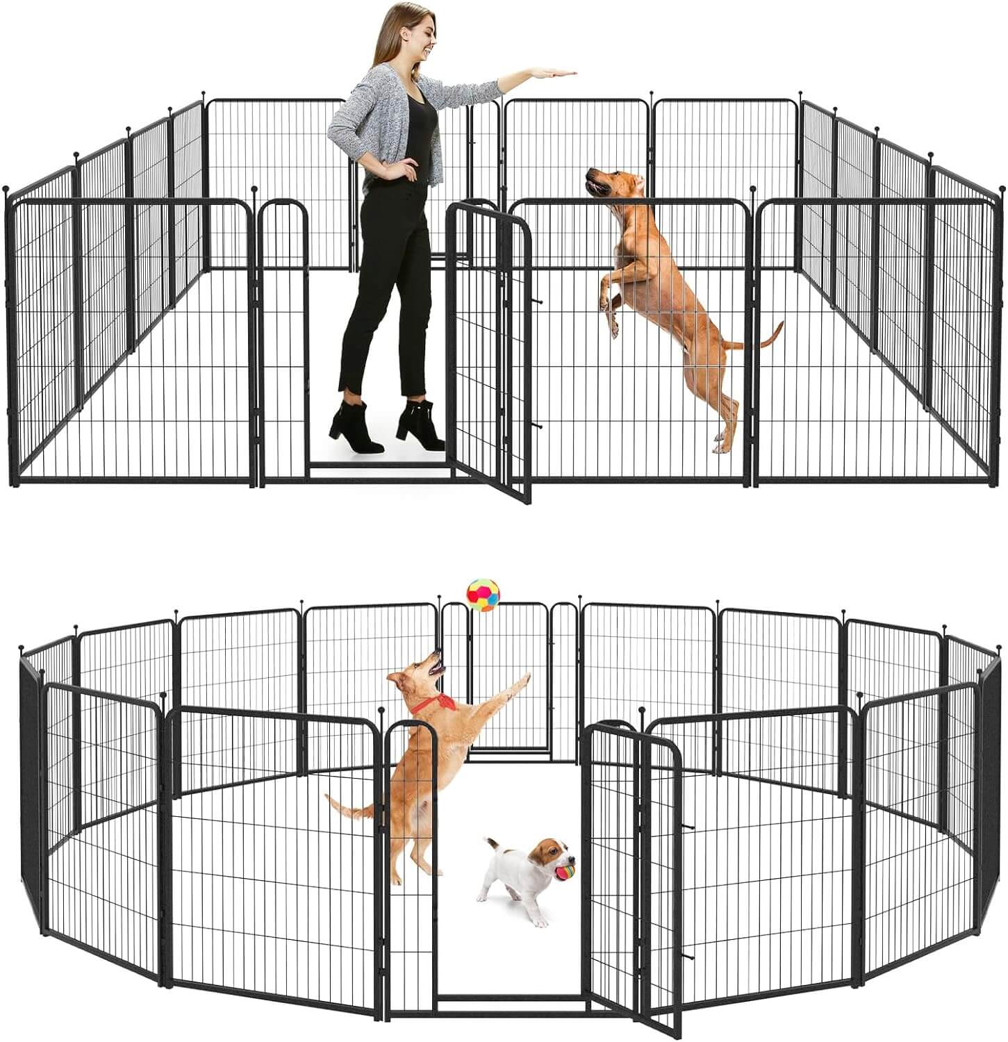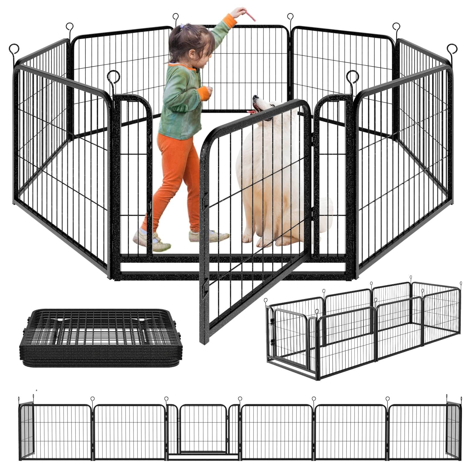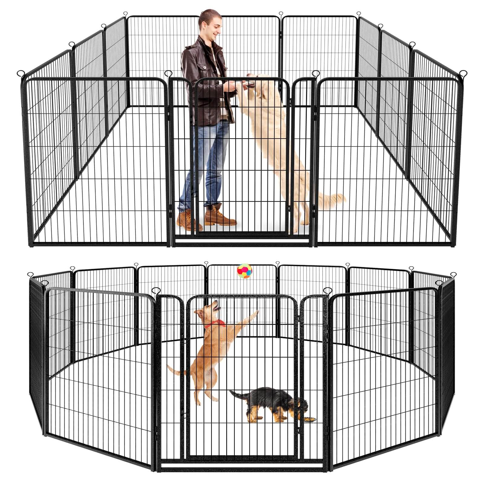 - đ¶ăSafe Enclosed & Expandable AreaăThe heavy-duty dog pen is sturdy and durable, pet fence provides a safe enclosed area for your pups play, run around and get the exercise they need, each panel is separate, which can be combined repeatedly for larger square footage, this temp fencing makes potty and house training much easier