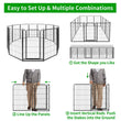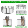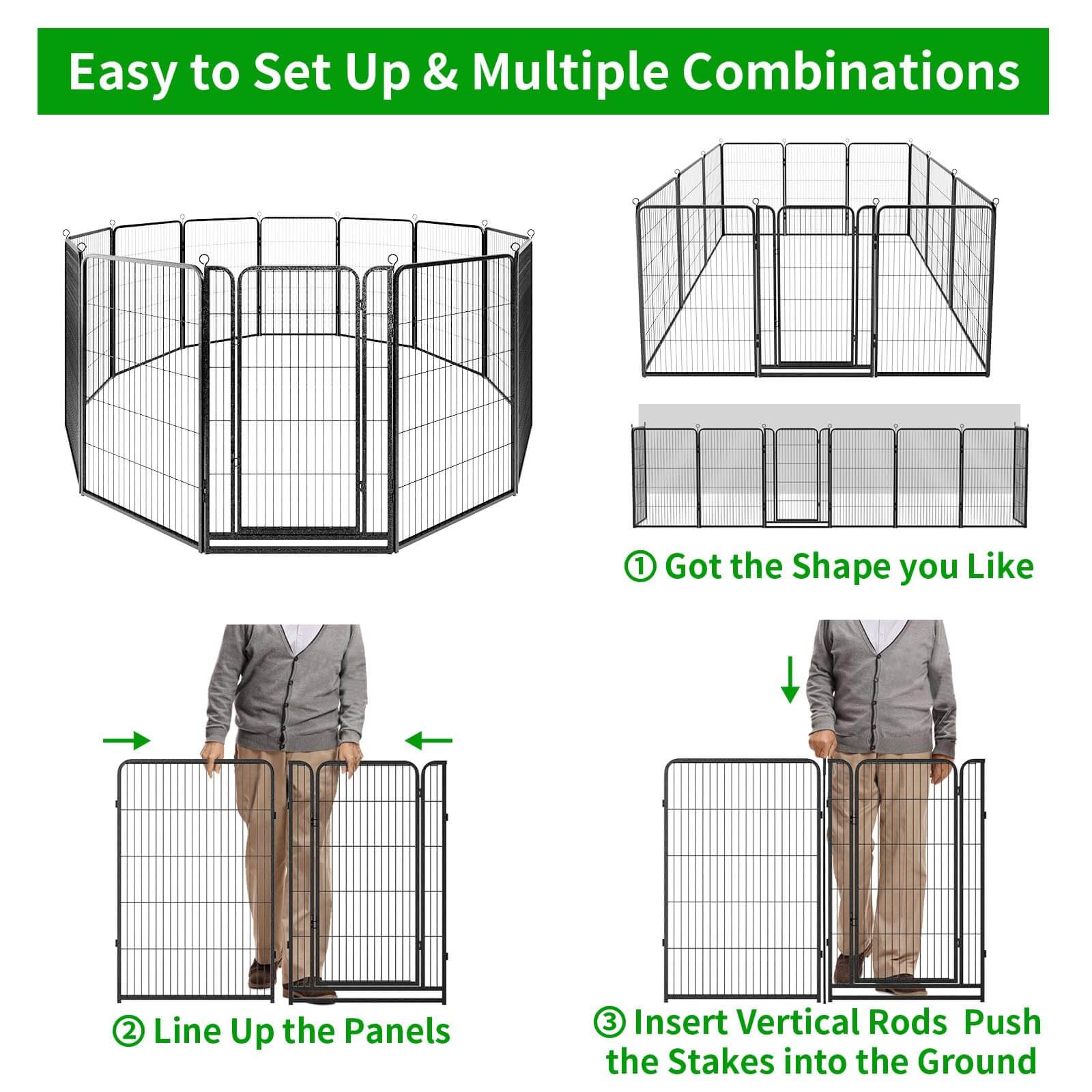 - đ¶ăEasy to Set Up & Multiple CombinationsăThe panels come with individual poles to connect them together, easy to set up or take it down in minutes, dog fence can do multiple combinations and configurations, dog playpen for the yard easily conforms to different shapes according to your garden or room, circle, polygon, irregular, etc