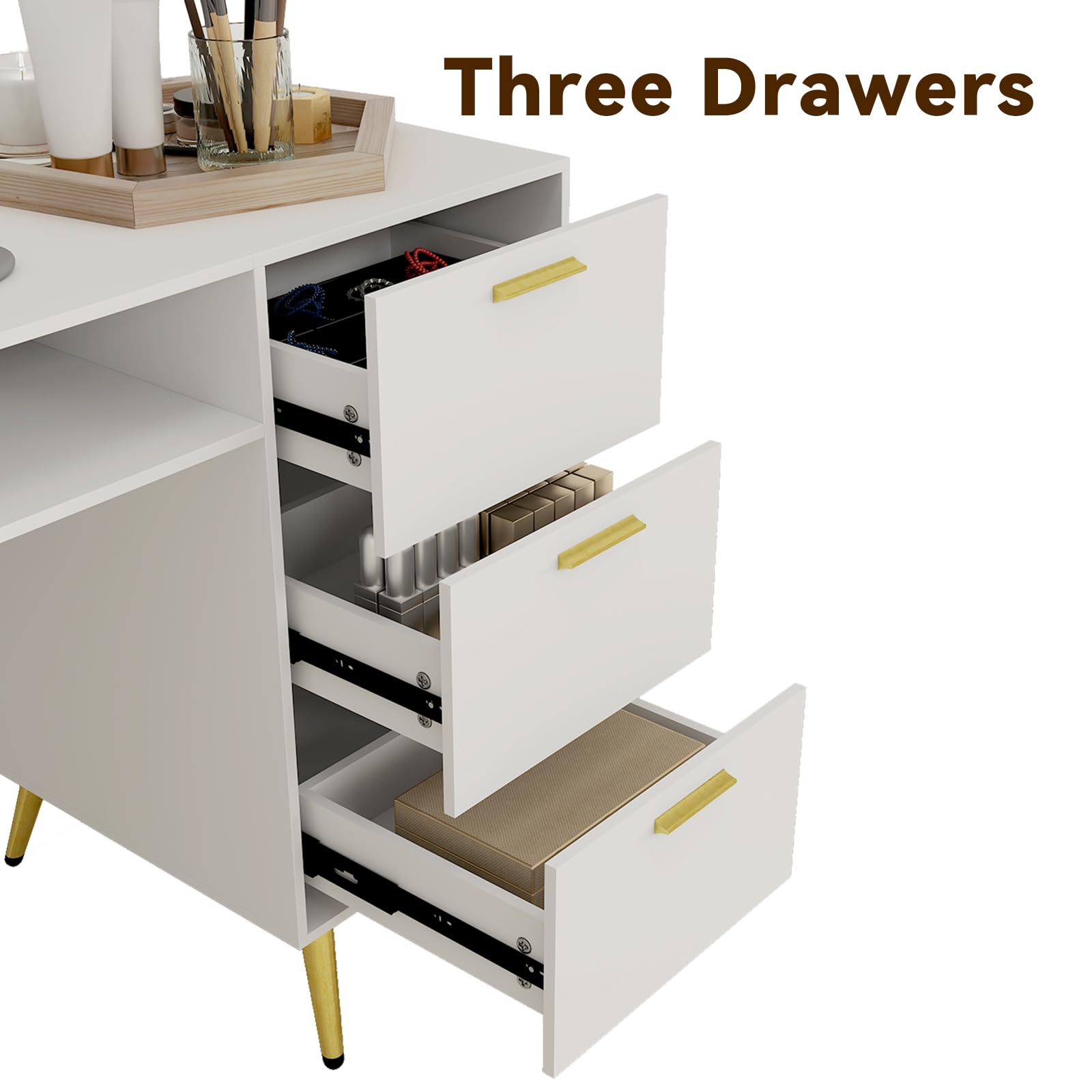 - Sturdy and Stable: This white nail makeup table is equipped with 8 iron support legs to provide stability for the products.