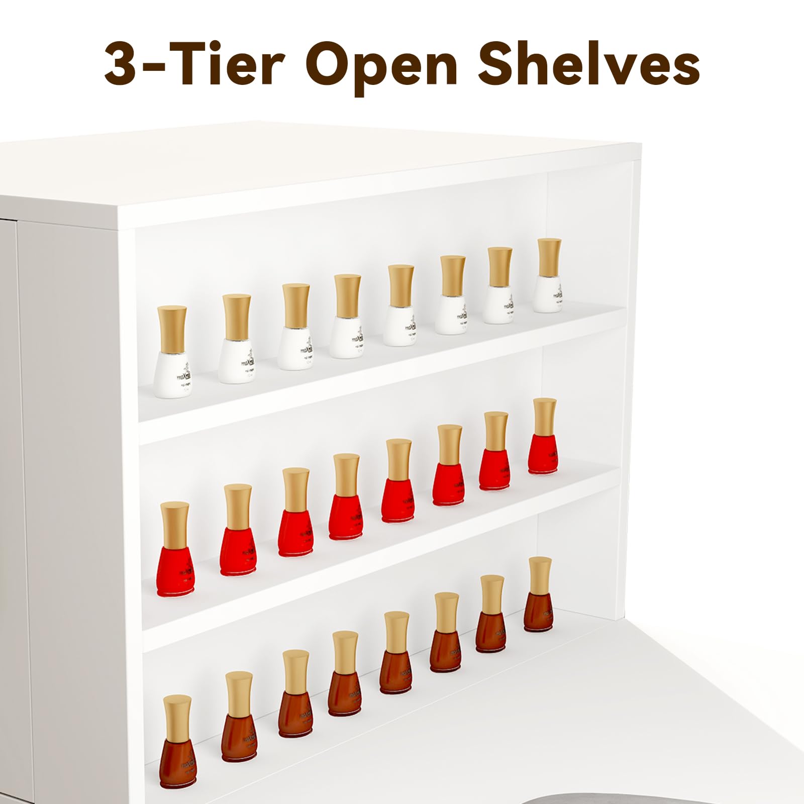 - Spacious Storage Capacity: This nail tech desk with storage workstation has 6 drawers to store your small items, and 3 shelves for storing some commonly used nail tools