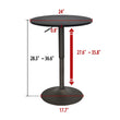 - Table size: 23.6" DIA x 27.5"-35.5"H Available height adjustment to various settings with a hydraulic lift