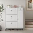 - 【Multifunctional Space】: The top of the slim shoe cabinet and drawer is perfect for placing photo frames, keys, wallets, and more. Make full use of the bottom space of the shoe cabinet to store slippers.