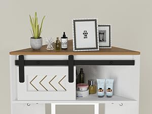 - Small but Large Capacity: This white dressing table with barn door comes with one drawer and 6 hooks, a storage vanity stool, providing ample storage space