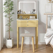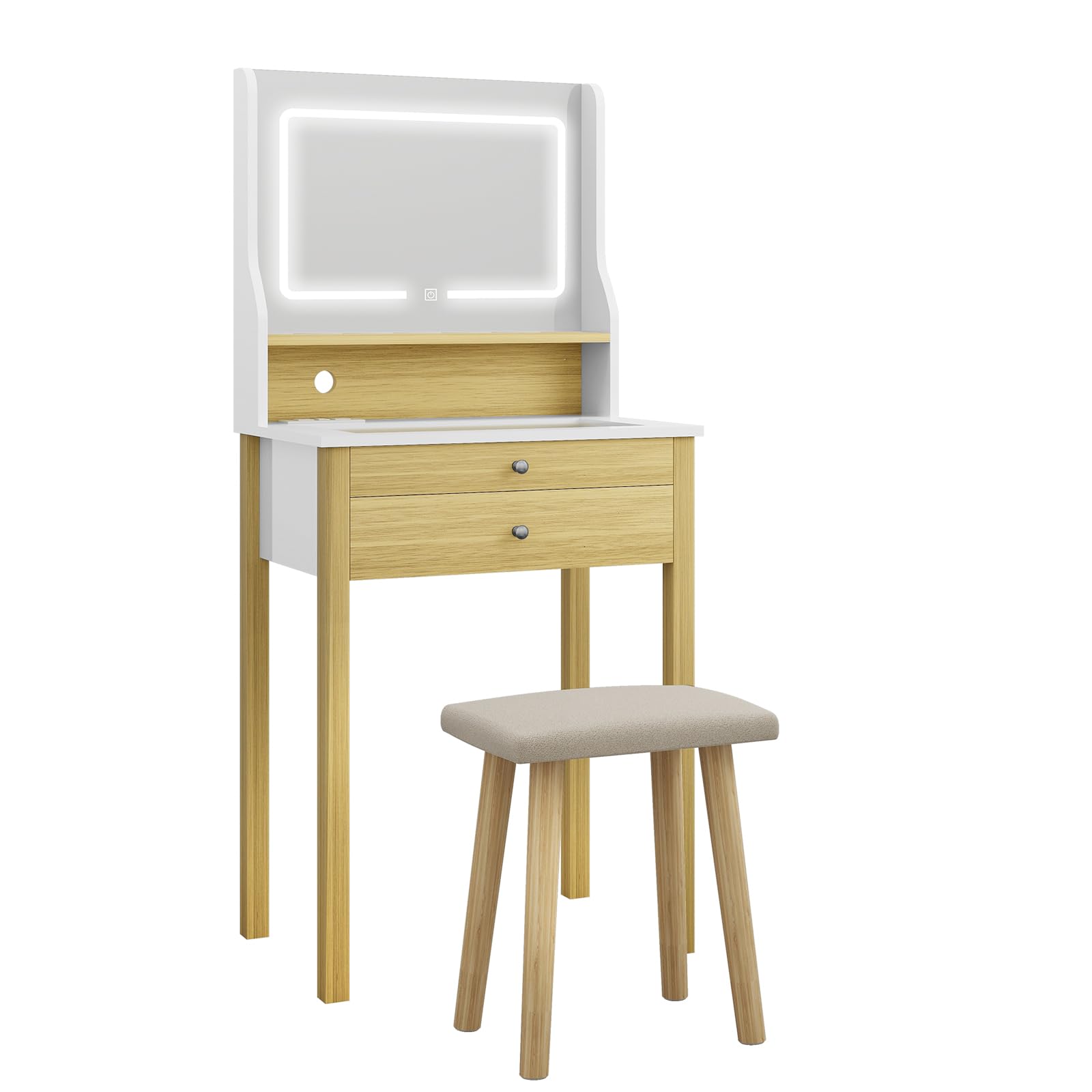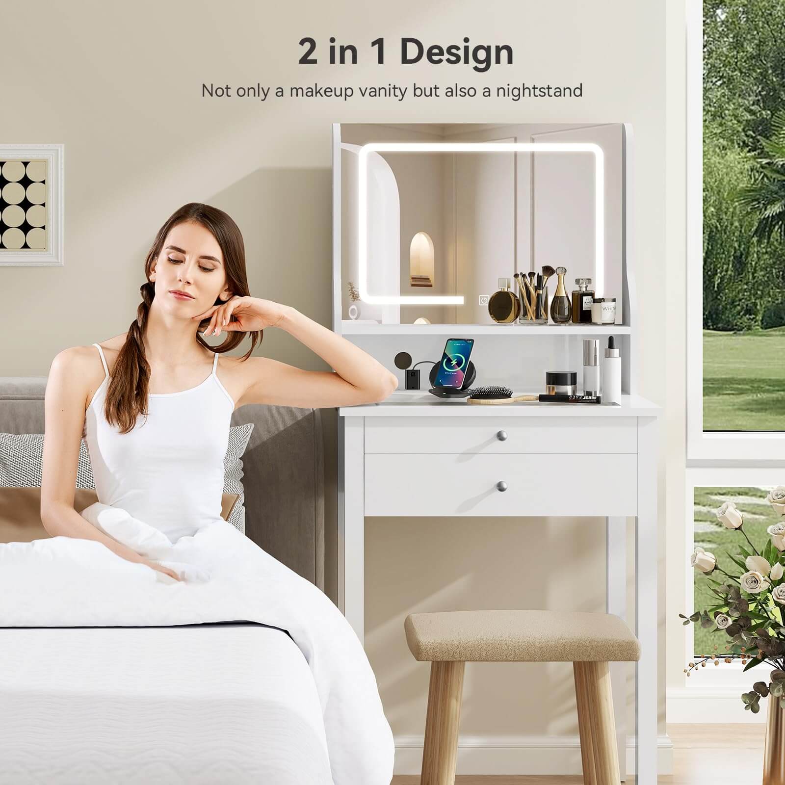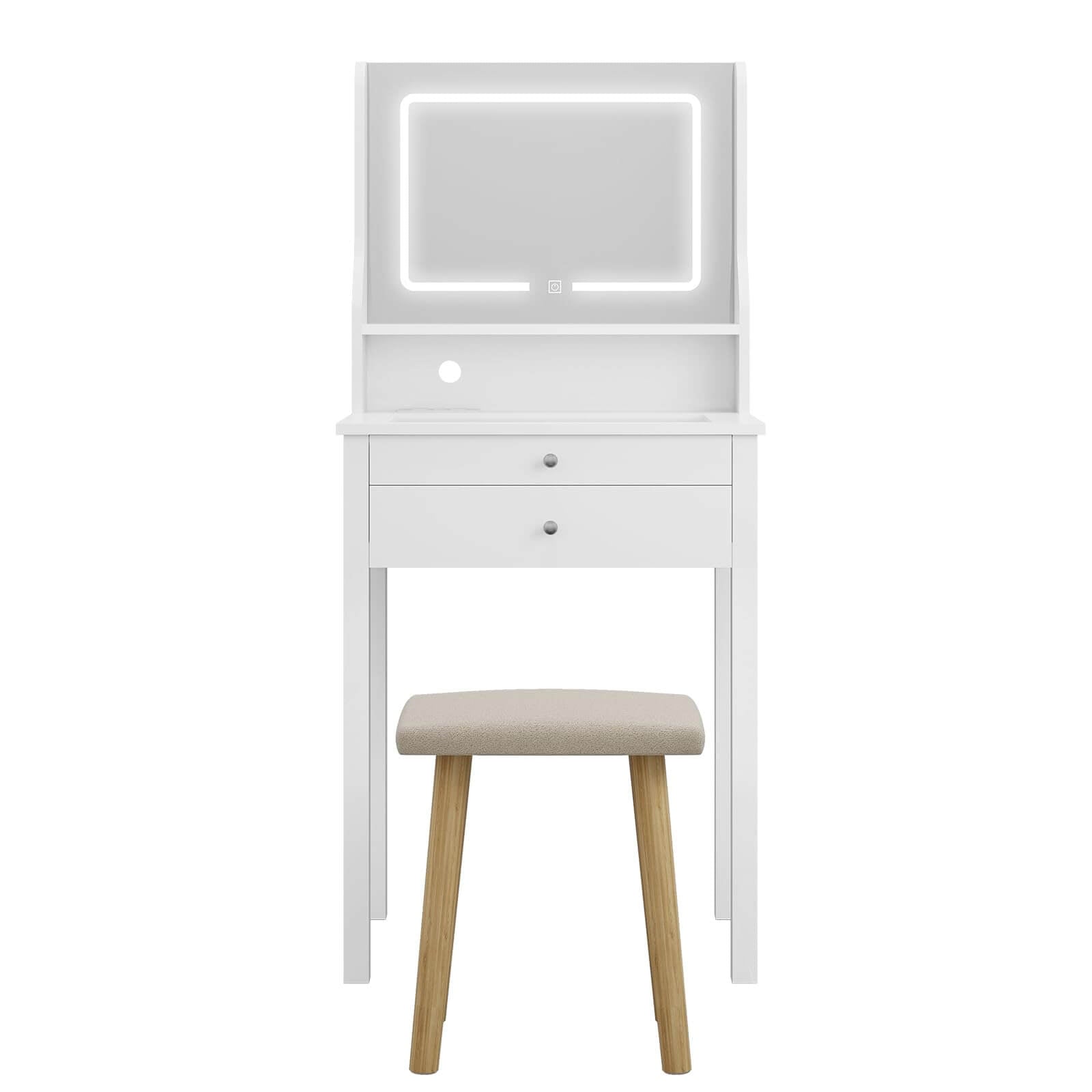 - Small Vanity for Small Space:Makeup vanity size:24*15.7*52”(L*W*H),Stool:15.7*10.2*17.5”(L*W*H).This size allows for less space needed for the makeup desk.Anti-tip Device behind the vanity , you can fix it on the wall for safety.