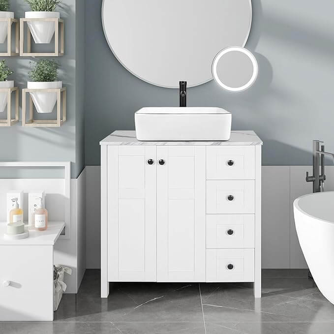- 【Pair with the Sink You Like】The Bathroom Vanity can be matched with different types of sinks. Our Bathroom Vanity fits harmoniously into different types of bathroom styles. You can always find your favorite Bathroom Vanity Set here.